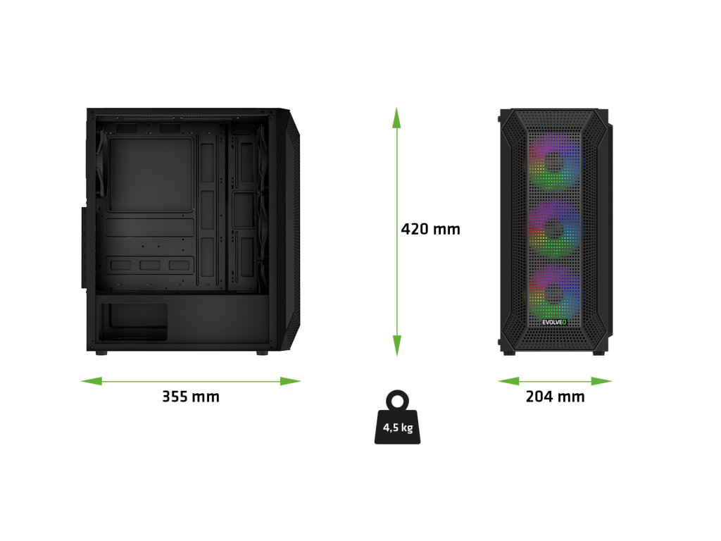 Na první dobrou byste možná řekli, že počítačová skříň o rozměrech 204 × 420 × 355 mm a hmotnosti 4,5 kg nemůže nabízet nic extra. Jenže to by nesměla být řeč o EVOLVEO Xenon-WH-4 – počítačové skříni, u které je přijatelná velikost v dokonalé rovnováze s velkorysostí vnitřního prostoru. Její zásluhou se vám stolní počítač bez problému vejde na stůl i do skromného herního koutku, ovšem do nitra skříně se vejde vše, co si vaše neskromné herní ambice žádají. Skříň je kompatibilní s klasickými napájecími zdroji ATX a se základními deskami ve formátech ATX, mATX (Micro ATX) i mITX (mini ITX) , přičemž jsou podporovány desky značky Intel i AMD. Máte tak volnost sestavit si počítač přesně podle svých představ.Okno, kterým můžete vyhlížet herní úspěchy