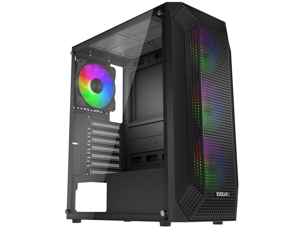 EVOLVEO Xenon, skříň ATX, 4x ARGB ventilátor 120mm, přední panel airflow mesh, černá