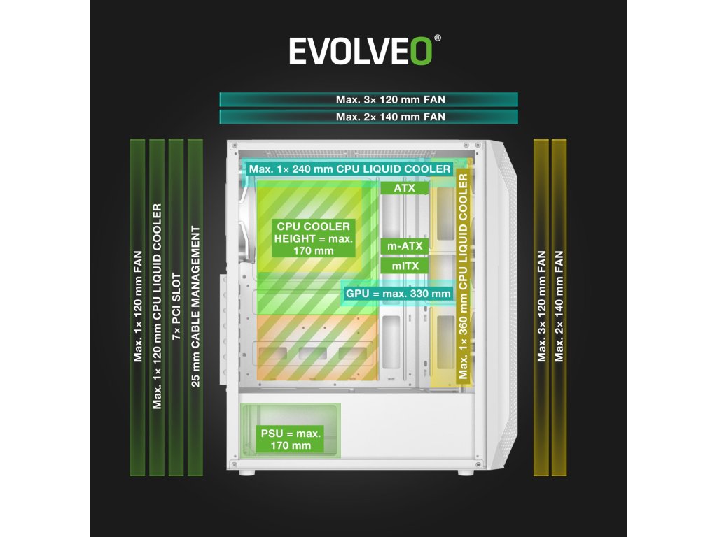 Herní počítačová ATX skříň EVOLVEO Xenon-WH-4