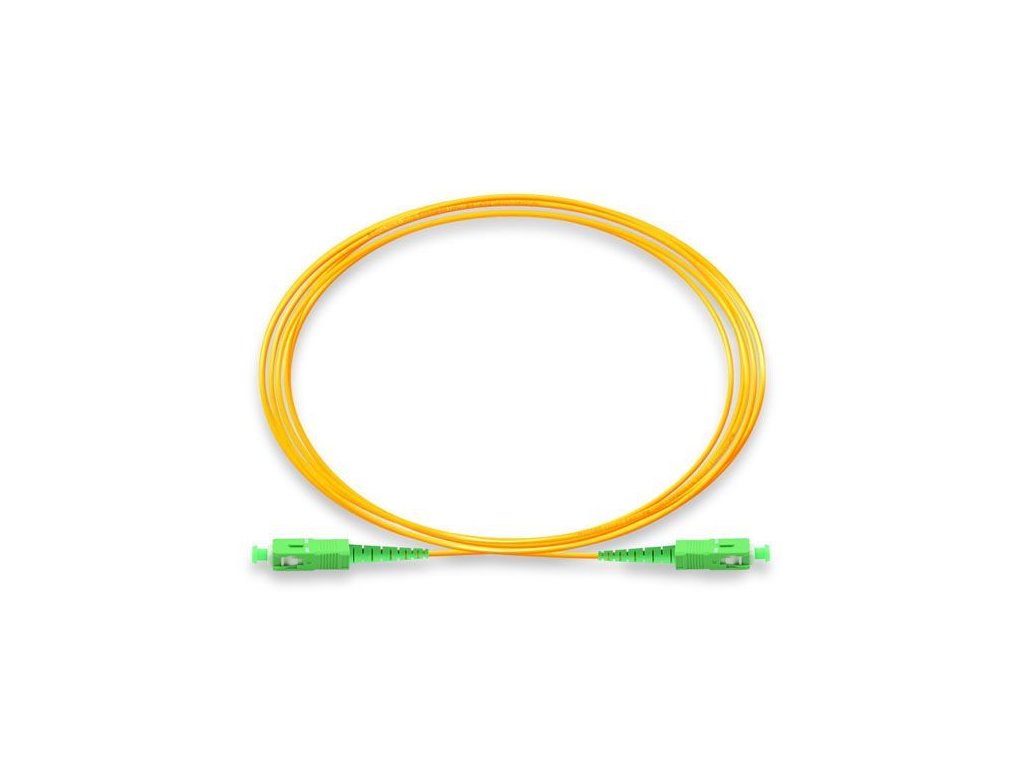 Optický patchcord (jumper kabel) je standardní nebo na míru vyrobený propojovací optický kabel, zakončený na obou stranách optickými konektory. Patchcordy se používají k propojení zařízení uvnitř rozvaděče, nebo k připojení aktivních prvků k optické trase zakončené v rozvaděči. Patchcordy bývají zpravidla duplexní (2x vlákno, 4x konektor), na přání lze dodat i kabely simplexní (1x vlákno, 2x konektor) pro jedno-vláknové xWDM aplikace. Konektory E2000, SC a LC jsou pak v duplexním provedení spojeny sponou - ta je rozebíratelná a umožňuje tak rozdělení duplexního patchcordu na dva simplexní (nelze pouze u odolné varianty HEAVY DUPLEX). Uvedené patchcordy jsou pouze úzkým výběrem ze sortimentu. Dále jsme schopni patchcordy dodat s konektory E2000, ST, SC, LC, FC, MTRJ, VF-45. Technická specifikace Typ vlákna: SM, 09/125, OS2, G657A1 Konektory: SC-SC Broušení: APC-APC Barva: Žlutá Armorování: NE Plášť: LSZH Průměr: 3mm Délka: 20m Provedení: Simplex Skladovací a provozní teplota: -40 až +70°C