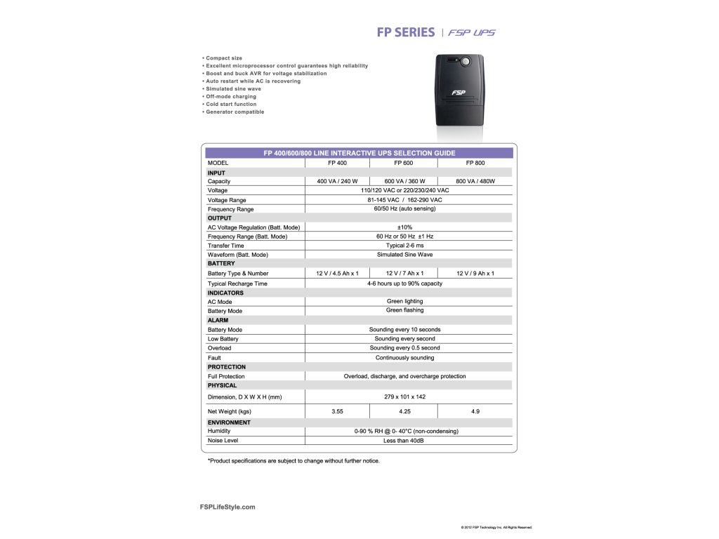 FSP/Fortron UPS FP 600, 600 VA, line interactive PPF3600708