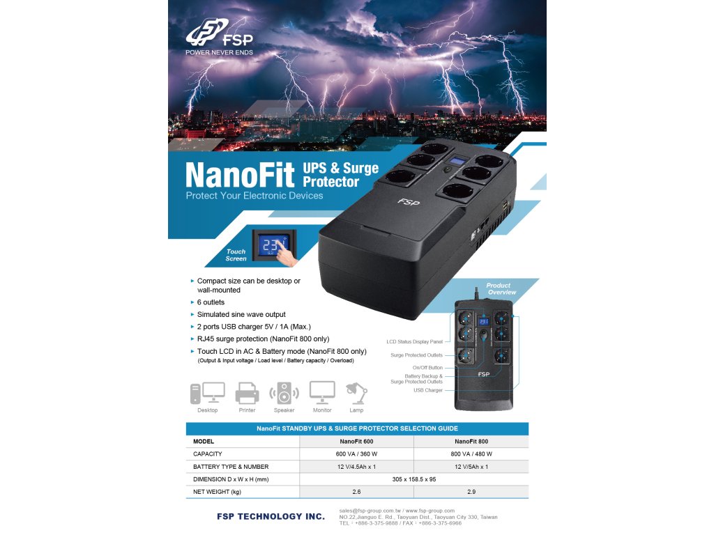 FSP/Fortron UPS NanoFit 600, 600 VA, 2xUSB power, LED, offline PPF3602301