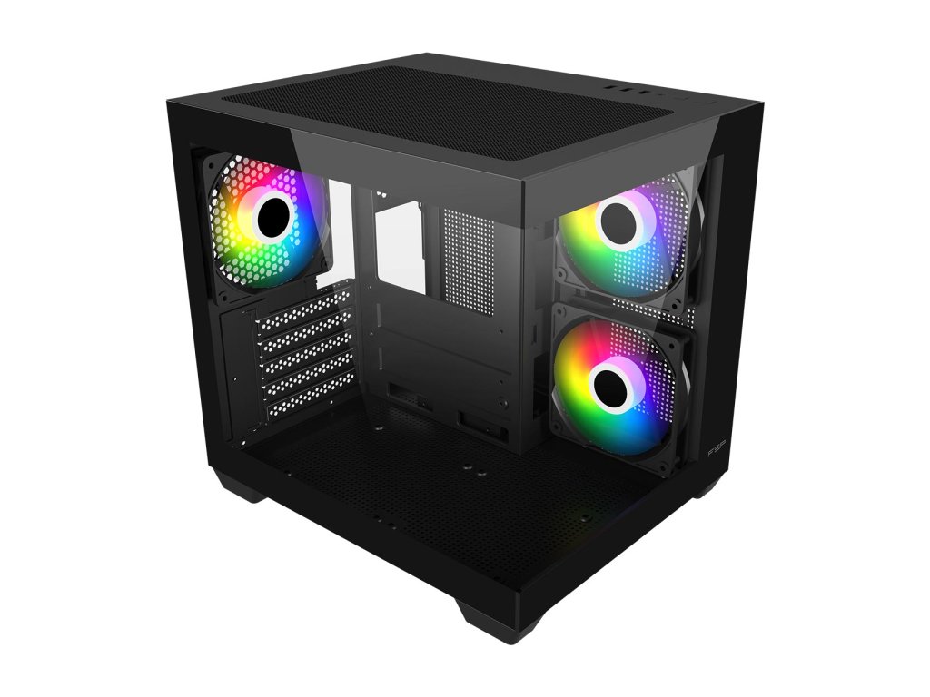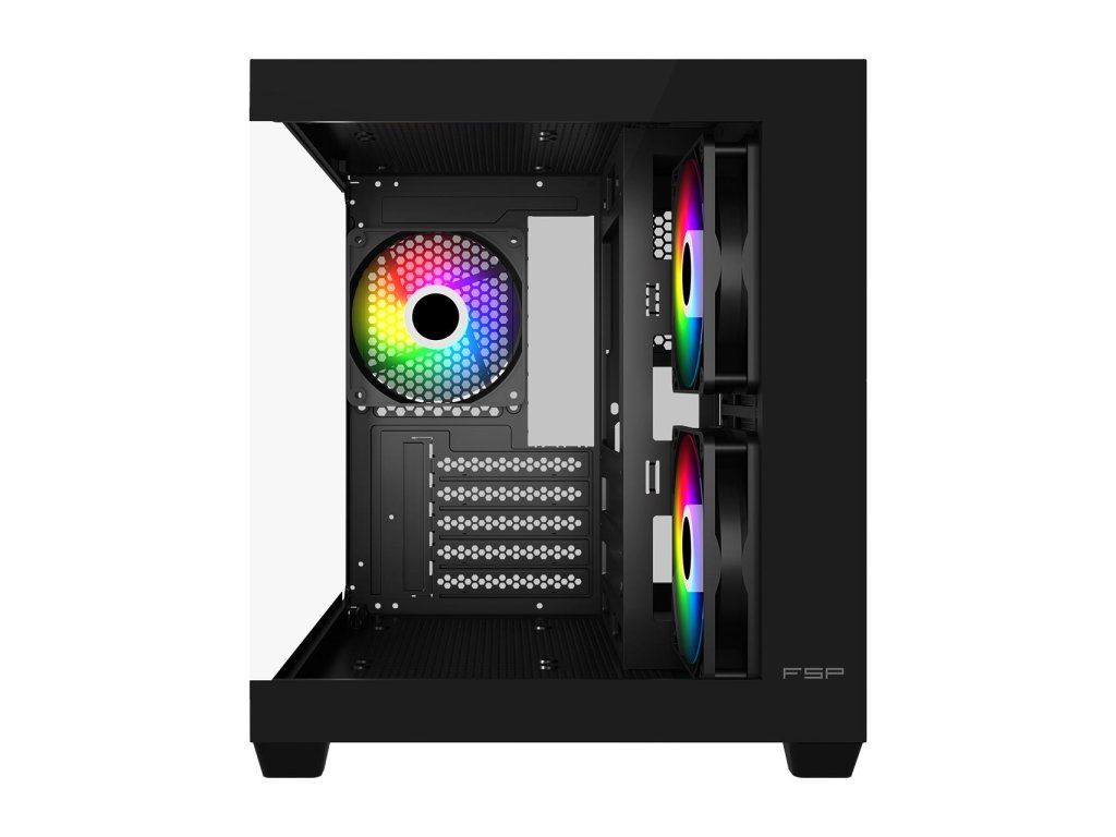 FSP S140-BA * dva skleněné panely * podpora chladiče až do 240mm Typ: Small Form Factor Podporuje základní desky: Mini-ITX, Micro-ATX Pole pro disková úložiště: 1x 3,5'' HDD, 2x 2,5'' SSD Počet rozšiřujících slotů: 5 Externí porty: * 1x USB 3.0 * 2x USB 2.0 * 1x audio konektor Podpora pro přídavné chlazení: * boční: 2x 120mm ventilátor nebo 240mm chladič * horní: 2x 120mm * spodní: 2x 120mm ventilátor nebo 240mm chladič * zadní: 1x 120mm Předinstalované ventilátory: * boční: 2x 120mm reverzní ARGB * zadní: 1x 120mm ARGB Maximální výška chladiče CPU: 155mm Maximální délka GPU: 325mm Typ napájecího zdroje: 150mm ATX Barva: černá Rozměry: 333x275x323mm Odkaz na web výrobce: https://www.fsplifestyle.com/en/product/S140.html