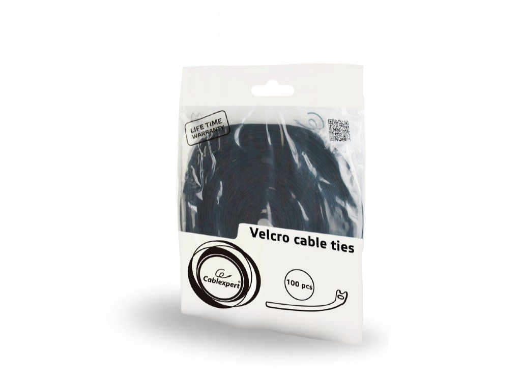 C-Tech CABLEXPERT stahovací pásky na suchý zip, 210mm, černé, 100ks v balení VT-210x12