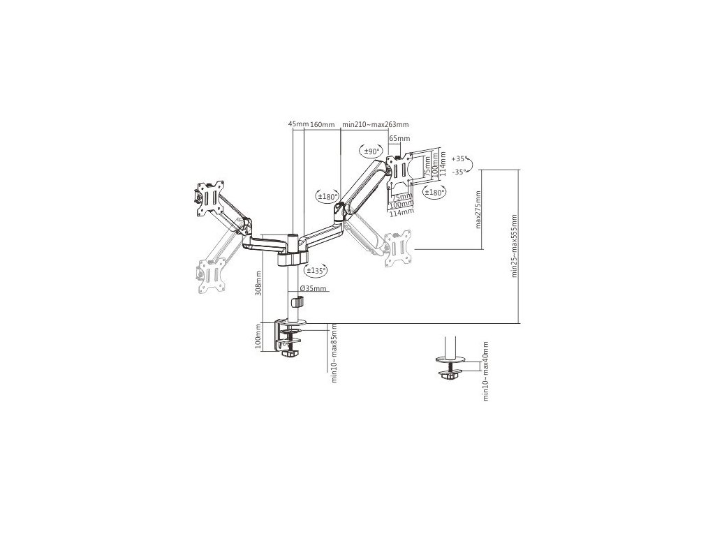 GEMBIRD Držák 2 monitorů na stůl MA-DA2P-01, naklápěcí, až do 32” a 9kg, černý Gembird