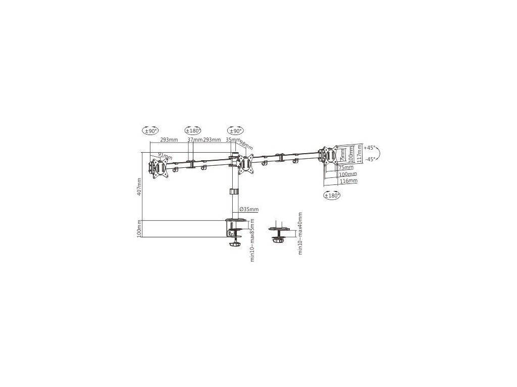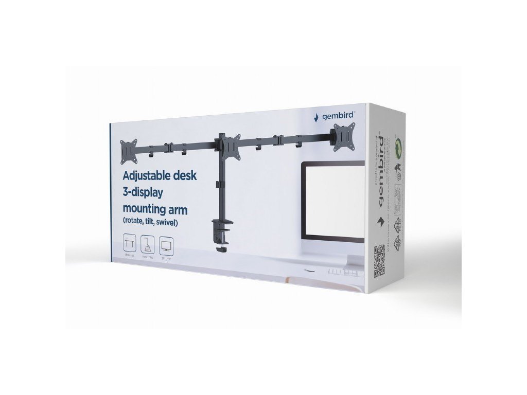 GEMBIRD Držák 3 monitorů na stůl MA-D3-01, naklápěcí, až do 27” a 7kg, černý Gembird