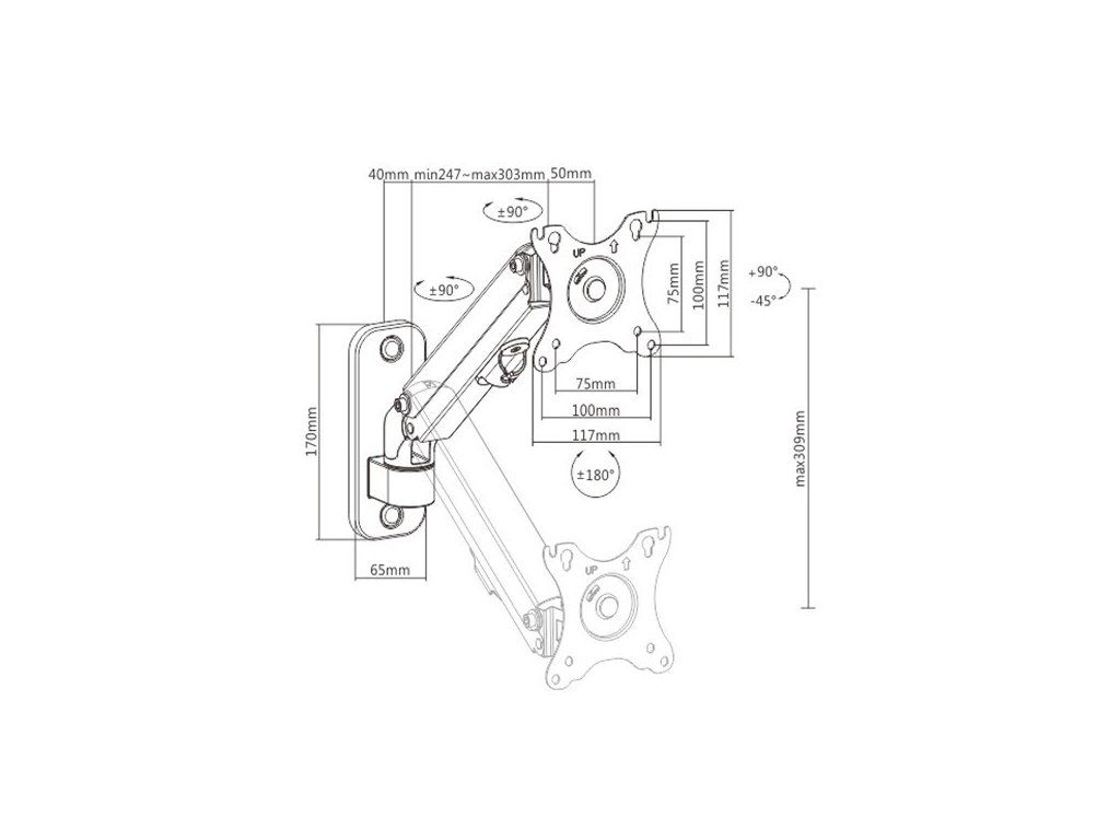 GEMBIRD Držák monitoru na stěnu MA-WA1-01, naklápěcí, až do 27” a 7kg, černý Gembird
