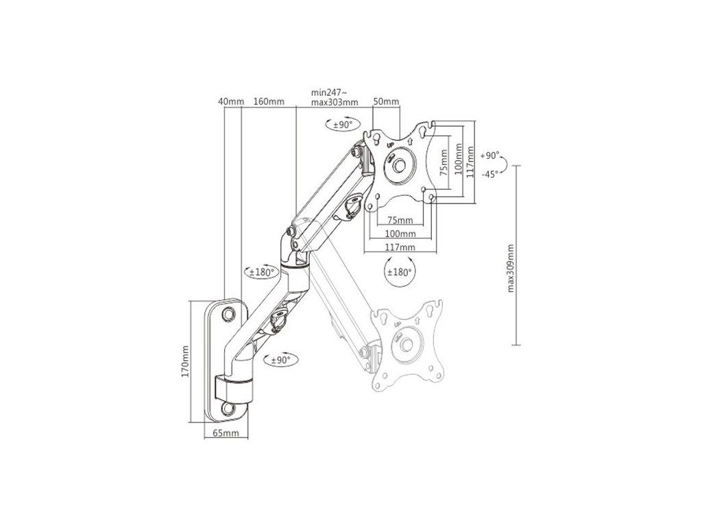 GEMBIRD Držák monitoru na stěnu MA-WA1-02, naklápěcí, až do 27” a 7kg, černý Gembird