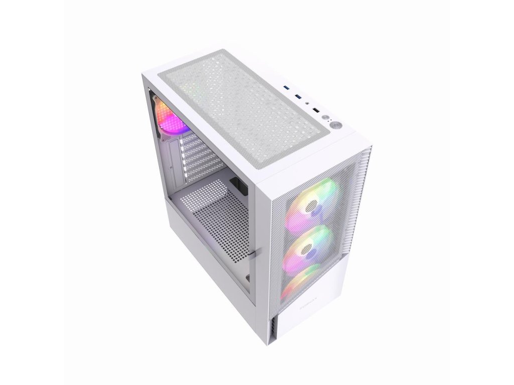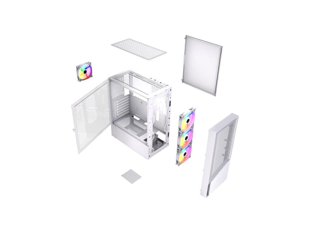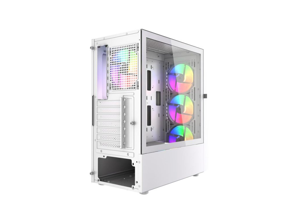GEMBIRD Fornax 4300W bílá herní ATX počítačová skříň s ARBG podsvícením * šrouby pro všechny držáky * magnetický boční panel * podpora vodního chlazení Podporuje základní desky: ATX Typ zdroje: ATX Pole pro disková úložiště: * 2x 3,5'' HDD * 3x 2,5'' SSD PCI rozšiřující sloty: 7 (včetně šroubů) Externí porty: * 2x USB 3.1 * 1x USB 2.0 * 1x kombinovaný audio konektor (sluchátka, mikrofon) Podpora pro přídavné chlazení * přední: ventilátor 3x 120mm, chladič 1x 360mm * horní: ventilátor 2x 120mm * zadní: ventilátor 1x 120mm, chladič 1x 120mm Předinstalované ventilátory * přední: 3x 120mm (ARGB, PWM) * zadní: 1x 120mm (ARGB, PWM) Maximální výška chladiče CPU: 155mm Maximální délka VGA: 320mm Maximální délka PSU: 150mm Barva: bílá Rozměry: 390x200x456mm Hmotnost: 4,7kg Záruka: 2 roky Odkaz na web výrobce: https://www.gembird.nl/item.aspx?id=13367&,lang=cz
