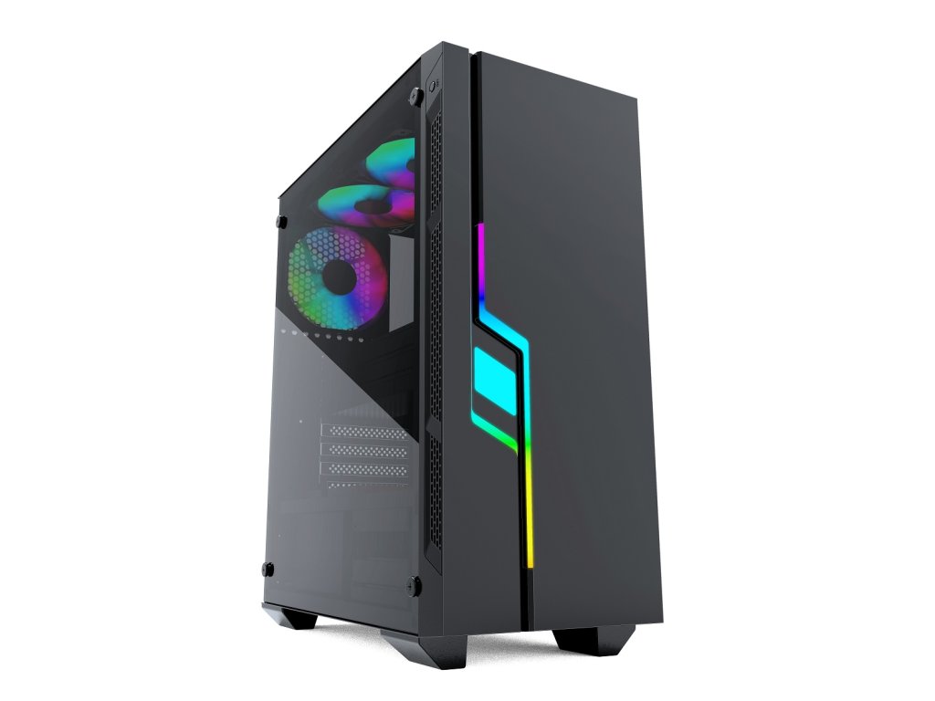 Model: Fornax 2000 RGB Typ: ATX Mid Tower Barva: Černá Materiál: SGCC Rozměry: 340 x 190 x 430 mm Podporuje základní desky: ATX, mATX, ITX Externí vstupy a výstupy: *2 x USB 3.0 *1 x stereo mini-jack *1 x microphone mini-jack Pole pro disková úložiště: *2 x 3.5'' HDD *2 x 2.5'' SSD Instalované chlazení: *Zadní: 1 x 120mm *Přední: 3 x 120mm (volitelné) nebo 2 x 140mm (volitelné) *Horní: 2 x 120mm (volitelné)