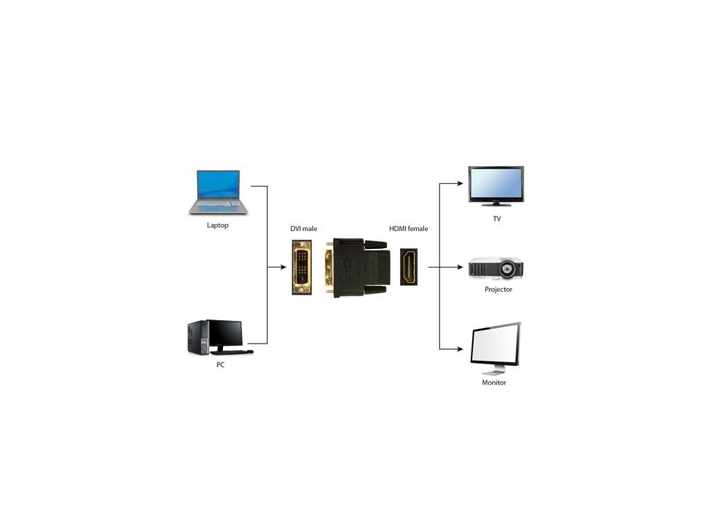 GEMBIRD redukce HDMI-DVI-D F/M,zlacené kontakty, černá A-HDMI-DVI-2 Gembird