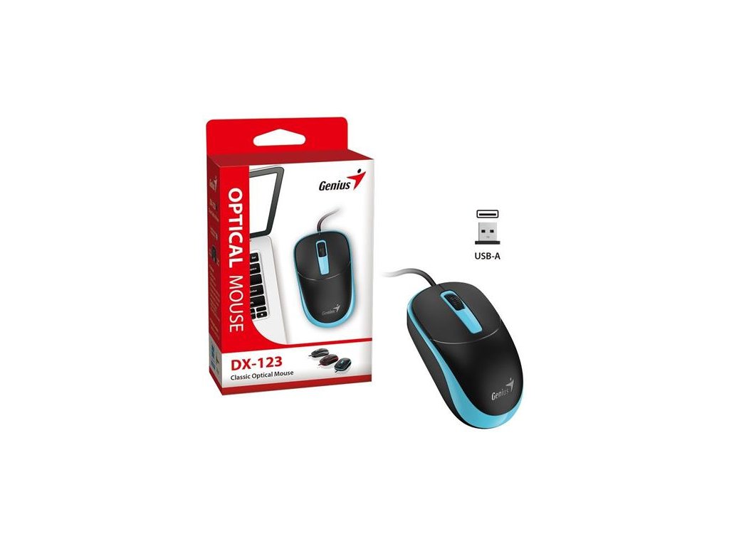Genius DX-123 Myš, drátová, optická, 1200DPI, 3 tlačítka, USB, černo-modrá
