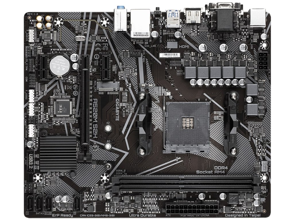 Chipset: AMD A520 Rozměrový formát: mATX Form Factor (244 mm x 205 mm) Podpora pro procesory: 3. generaci procesorů AMD Ryzen™ / 3. generaci procesorů AMD Ryzen™ s grafickým adaptérem Radeon™ Patice procesoru: AM4 Pozice na paměti: 2x DDR4 DIMM Podpora pro paměti: *3. generace procesorů AMD Ryzen™: Support for DDR4 5000(O.C.) / 4866(O.C.) / 4600(O.C.) / 4400(O.C.) / 4000(O.C.) / 3600(O.C.) / 3333(O.C.) / 3200 / 2933 / 2667 / 2400 / 2133 MHz memory modules *3rd Gen AMD Ryzen™ with Radeon™ Graphics processors: Support for DDR4 5000(O.C.) / 4866(O.C.) / 4600(O.C.) / 4400(O.C.) / 4000(O.C.) / 3600(O.C.) / 3333(O.C.) / 3200 / 2933 / 2667 / 2400 / 2133 MHz memory modules Max.velikost operační paměti: 64 GB Podpora pro paměti typu: DDR4 *Dvoukanálová architektura paměti *Podpora paměťových modulů ECC Un-buffered DIMM 1Rx8/2Rx8 *Podpora paměťových modulů non-ECC Un-buffered DIMM 1Rx8/2Rx8/1Rx16 *Podpora paměťových modulů s XMP profilem (Extreme Memory Profile) Grafické výstupy: Integrované ve 3. generaci procesorů AMD Ryzen™ s grafickým adaptérem Radeon Zvuková karta: *Kodek Realtek® ALC887 Síťová karta: *Realtek® GbE LAN čip (1000 Mbit/100 Mbit) Rozšiřující sloty: *1x slot PCI Express x16 s podporou PCIe 3.0 běžící v režimu x16 *2x PCI Express x1 slots, supporting PCIe 3.0 RAID řadič: 0, 1, 10 SATA: *4x konektor SATA 6 Gb/s M.2: *1x M.2 connector (Socket 3, M key, type 2242/2260/2280 SATA and PCIe 3.0 x4/x2 SSD support) USB: *zadní USB porty (celkem 6) *2x port USB 2.0/1.1 *4x port USB 3.2 Gen 1 *přední USB porty (celkem 6) *2x port USB 3.2 Gen 1 *4x port USB 2.0/1.1 Interní porty: *1x 24-pin hlavní napájecí konektor ATX *1x 8pinový ATX 12V napájecí konektor *1x konektor pro ventilátor na chladiči procesoru *2x konektor pro systémový ventilátor *1x konektor pro připojení pásky s adresovatelnými LED *1x konektor pro pásky s RGB LED *1x konektor M.2 Socket 3 *4x konektor SATA 6Gb/s *1x konektor čelního panelu *1x konektor pro audio na předním panelu *1x interní konektor USB 3.2 Gen 1 *2x interní konektory USB 2.0/1.1 *1x konektor pro Trusted Platform Module (TPM) (2x 6 pinů, pouze pro modul GC-TPM2.0_S) *1x interní konektor pro sériový port *1x header pro reproduktor *1x konektor pro detekci otevření skříně *1x propojka Clear CMOS Externí porty: *1x port PS/2 pro klávesnici/myš *1x port D-Sub *1x port DVI-D *1x port HDMI *4x port USB 3.2 Gen 1 *2x port USB 2.0/1.1 *1x port RJ-45 *1x tlačítko Q-Flash Plus *3x audio jack BIOS: 1x 128 Mb Flash, AMI UEFI BIOS Stránka výrobce: http://www.gigabyte.cz/products/page/mb/A520M-S2H-rev-10