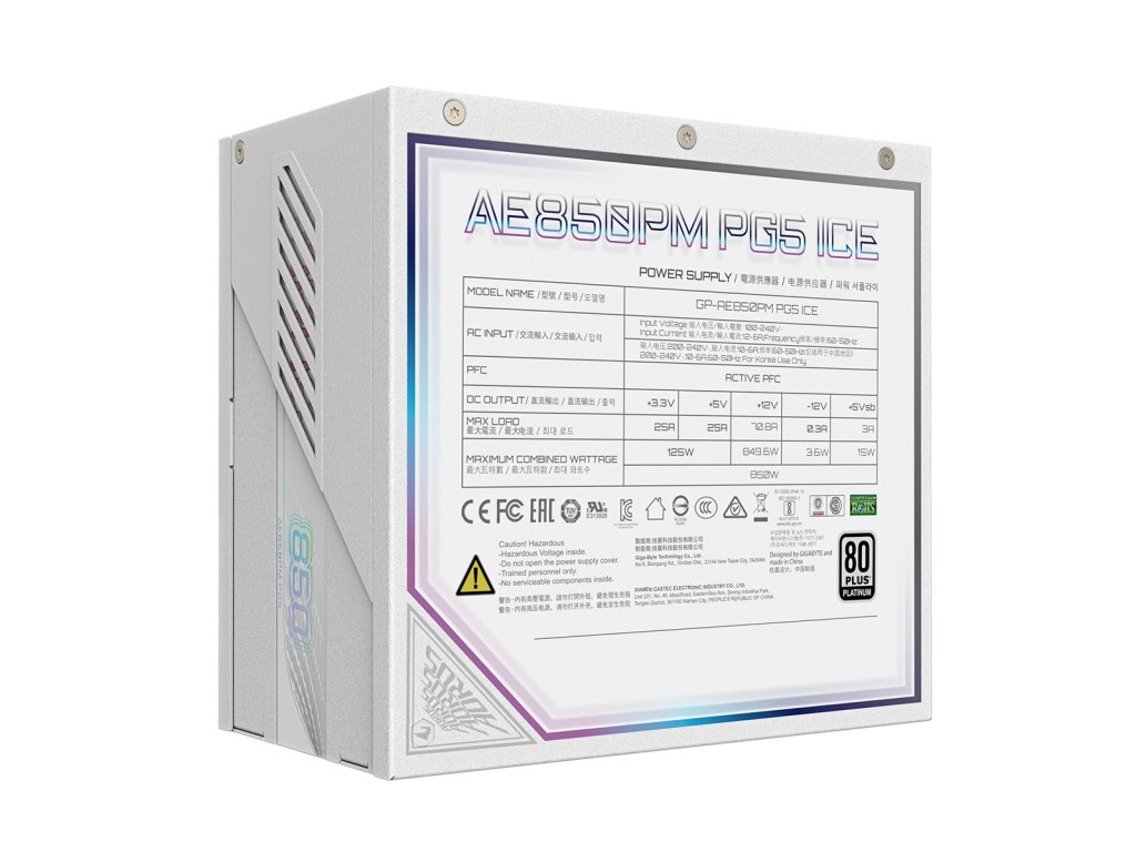 GIGABYTE AORUS ELITE P850W ICE/850W/ATX 3.1/80PLUS Platinum/Modular/Retail GP-AE850PM PG5 ICE Gigabyte