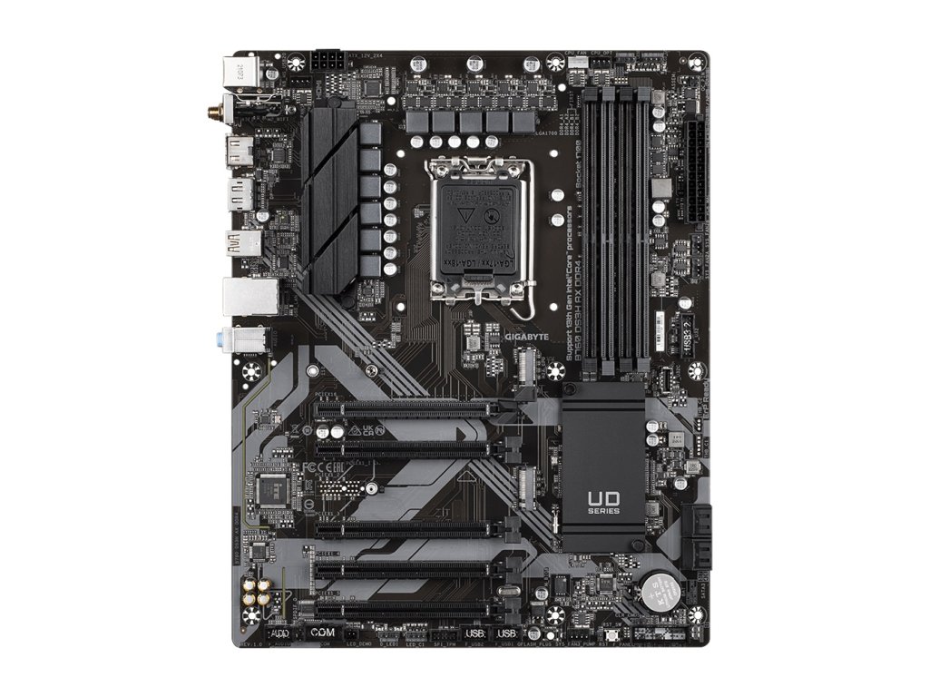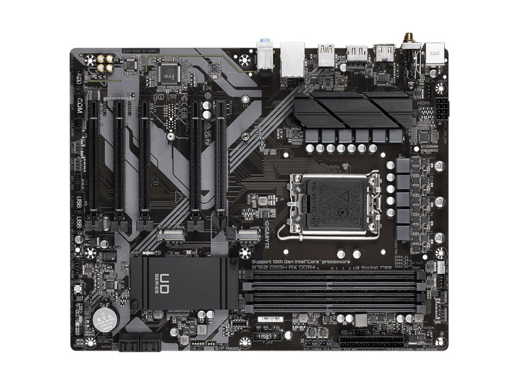 GIGABYTE B760 DS3H AX DDR4 (rev. 1.0) Chipset: Intel® B760 Express Rozměrový formát: ATX (305x244mm) Podpora pro procesory: 13. a 12. generace Intel® Core™, Pentium® Gold a Celeron® Patice procesoru: LGA1700 Paměť: * 4x DIMM patice podporující až 128GB, DDR4 5333(OC)/5133(OC)/5000(OC)/4933(OC)/4800(OC)/4700(OC)/4600(OC)/4500(OC)/4400(OC)/4300(OC)/4266(OC)/4133(OC)/4000(OC)/3866(OC)/3800(OC)/3733(OC)/3666(OC)/3600(OC)/3466(OC)/3400(OC)/3333(OC)/3300(OC)/3200/3000/2933/2800/2666/2400/2133MT/s * dvoukanálová architektura paměti * podpora paměťových modulů Extreme Memory Profile (XMP) Grafické výstupy: * 1x DisplayPort 1.2 * 1x HDMI® 2.0 Zvuková karta: Realtek 7.1 Surround Sound High Definition Audio CODEC Ethernet: Realtek® GbE LAN WLAN + Bluetooth: AMD Wi-Fi 6E RZ608 (MT7921K) + Bluetooth 5.2 Rozšiřující sloty: * 1x PCI Express x16 s podporou PCIe 4.0 a běžícím na x16 (PCIEX16) * 4x PCI Express x16 s podporou PCIe 3.0 a běžícím na x1 (PCIEX1_1, PCIEX1_3~PCIEX1_5) Úložný prostor: celkem podporuje 2 sloty M.2 a 4 porty SATA 6Gb/s * 1x M.2, M key, typ 22110/2280 - podpora PCIe 4.0 x4/x2 SSD (M2A_CPU) * 1x M.2, M key, typ 2280 - podpora PCIe 4.0 x4/x2 SSD (M2P_SB) * 4x port SATA 6Gb/s RAID řadič: podpora RAID 0/1/5/10 pro úložná zařízení SATA USB: Zadní USB (celkem 6 portů) * 1x USB typ-C® s podporou USB 3.2 Gen 2x2 * 1x USB 3.2 Gen 2 typu A (červený) * 4x USB 2.0/1.1 Přední USB (celkem 7 portů) * 1x USB typ-C® konektor - podpora USB 3.2 Gen 1 * 1x USB 3.2 Gen 1 header - podpora dalších 2 portů USB 3.2 Gen 1 * 2x USB 2.0/1.1 header - podpora dalších 4 portů USB 2.0/1.1 Porty na zadním panelu: * 1x USB typ-C® s podporou USB 3.2 Gen 2x2 * 1x USB 3.2 Gen 2 typu A (červený) * 4x USB 2.0/1.1 * 2x SMA anténní konektor (2T2R) * 1x DisplayPort 1.2 * 1x HDMI 2.0 * 1x RJ-45 * 3x audio jack * 1x PS/2 pro klávesnici/myš Interní porty: Napájení * 1x 24-pin ATX hlavní napájecí konektor * 1x 8-pin ATX 12V napájecí konektor Související s ventilátorem a chlazením * 1x CPU fan header * 1x CPU fan/water cooling pump header * 3x system fan header * 1x system fan/water cooling pump header Související s úložištěm * 2x M.2 slot (Key M) * 4x SATA 6Gb/s port USB * 1x USB typ-C® header s podporou USB 3.2 Gen 1 * 1x USB 3.2 Gen 1 header * 2x USB 2.0/1.1 header Ostatní * 2x adresovatelný LED strip header * 2x RGB LED strip header * 1x front panel header * 1x front panel audio header * 1x S/PDIF Out header * 1x Trusted Platform Module header (pouze pro modul GC-TPM2.0 SPI/GC-TPM2.0 SPI 2.0) * 1x serial port header * 1x tlačítko reset * 1x tlačítko Q-Flash Plus * 1x reset jumper * 1x Clear CMOS jumper BIOS: 1x 128Mb flash, AMI UEFI BIOS Odkaz na stránku výrobce: https://www.gigabyte.com/Motherboard/B760-DS3H-AX-DDR4-rev-10#kf