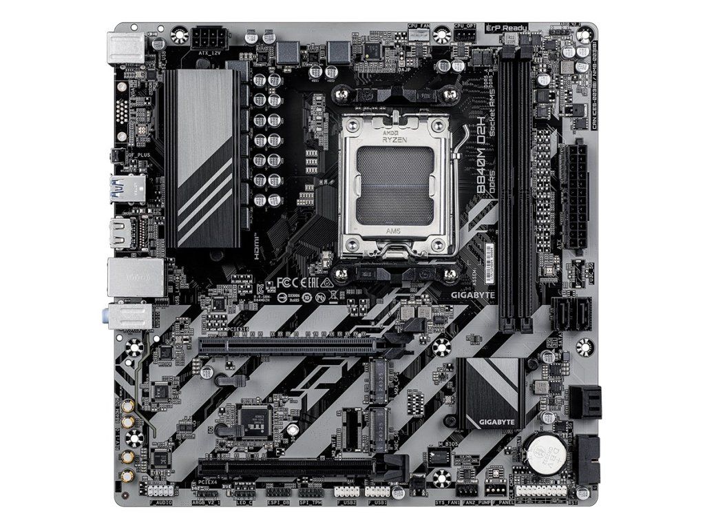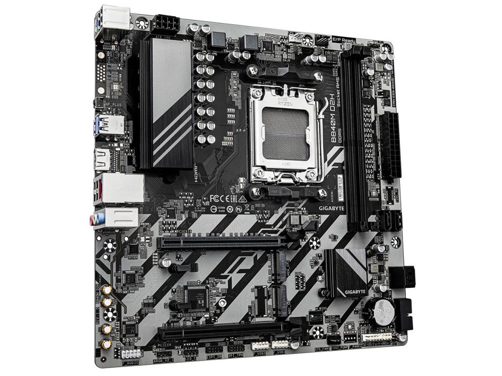 GIGABYTE B840M D2H * D5 Bionic Corsa * X3D Turbo Mode * EZ-Latch * Q-Flash Auto Scan * Smart Fan 6 Chipset: AMD B840 Rozměrový formát: Micro ATX (244x244mm) Podpora pro procesory: AMD Ryzen™ řady 9000/8000/7000 Patice procesoru: AM5 Paměť: * 2x DIMM patice podporující až 128GB, DDR5 7600(OC)/7200(OC)/7000(OC)/6800(OC)/6666(OC)/6600(OC)/6400(OC)/6200(OC)/6000(OC)/5600(OC)/5200/4800/4400 MT/s paměťové moduly bez ECC * dvoukanálová architektura paměti * podpora pro AMD EXtended Profiles for Overclocking (AMD EXPO™) a podpora paměťových modulů Extreme Memory Profile (XMP) Grafické výstupy: grafické specifikace se mohou lišit v závislosti na podpoře CPU * 1x HDMI 2.1 TMDS Zvuková karta: kodek Realtek 7.1 Surround Sound High Definition Audio Ethernet: Realtek® 2,5 GbE LAN WLAN + Bluetooth: ne Rozšiřující sloty: * 1x PCI Express x16 (PCIEX16) * 1x PCI Express x16, podpora PCIe 3.0 a běží na x4 (PCIEX4) RAID řadič: podpora pro RAID 0/1/(5)/10 pro úložná zařízení NVMe SSD a RAID 0/1/10 pro úložná zařízení SATA Úložný prostor: celkem podporuje 2 sloty M.2 a 4 porty SATA 6Gb/s * 1x M.2 (M2A_CPU), Socket 3, M Key, typ 2580/2280 SSD PCIe 4.0 x4/x2 * 1x M.2 (M2C_SB), Socket 3, M Key, typ 2280 SSD PCIe 3.0 x2 * 4x SATA 6Gb/s USB: Zadní USB (celkem 6 portů) * 2x USB 3.2 Gen 1 * 4x USB 2.0/1.1 Přední USB (celkem 6 portů) * 1x USB 3.2 Gen 1 header - podpora dalších 2 portů USB 3.2 Gen 1 * 2x USB 2.0 header - podpora dalších 4 portů USB 2.0 Porty na zadním panelu: * 1x PS/2 pro klávesnici/myš * 2x USB 3.2 Gen 1 * 4x USB 2.0/1.1 * 1x HDMI * 1x tlačítko Q-Flash Plus * 1x RJ-45 * 3x audio konektor Interní porty: Napájení * 1x 24pin ATX hlavní napájecí konektor * 1x 8pin ATX 12V napájecí konektor Související s ventilátorem a chlazením * 1x CPU fan header * 1x CPU fan/water cooling pump header * 1x system fan header Související s úložištěm * 2x M.2 slot (Key M) * 4x SATA 6Gb/s port USB * 1x USB 3.2 Gen 1 header * 2x USB 2.0/1.1 header Ostatní * 2x adresovatelný RGB Gen2 LED strip header * 1x RGB LED strip header * 1x front panel header * 1x front panel audio header * 1x Trusted Platform Module header (pouze pro modul GC-TPM2.0 SPI/GC-TPM2.0 SPI 2.0/GC-TPM2.0 SPI V2) * 1x reset jumper * 1x Clear CMOS jumper BIOS: 1x 256Mb flash, AMI UEFI BIOS (PnP 1.0a, DMI 2.7, WfM 2.0, SM BIOS 2.7, ACPI 5.0) Odkaz na stránku výrobce: https://www.gigabyte.com/Motherboard/B840M-D2H#kf