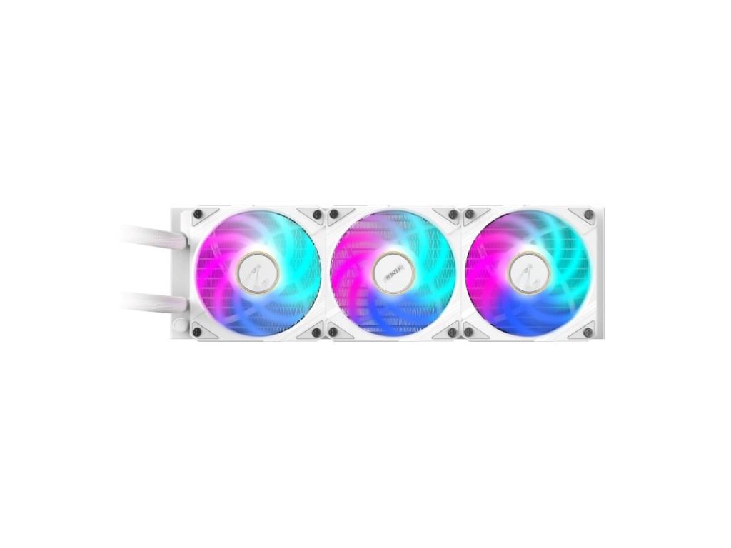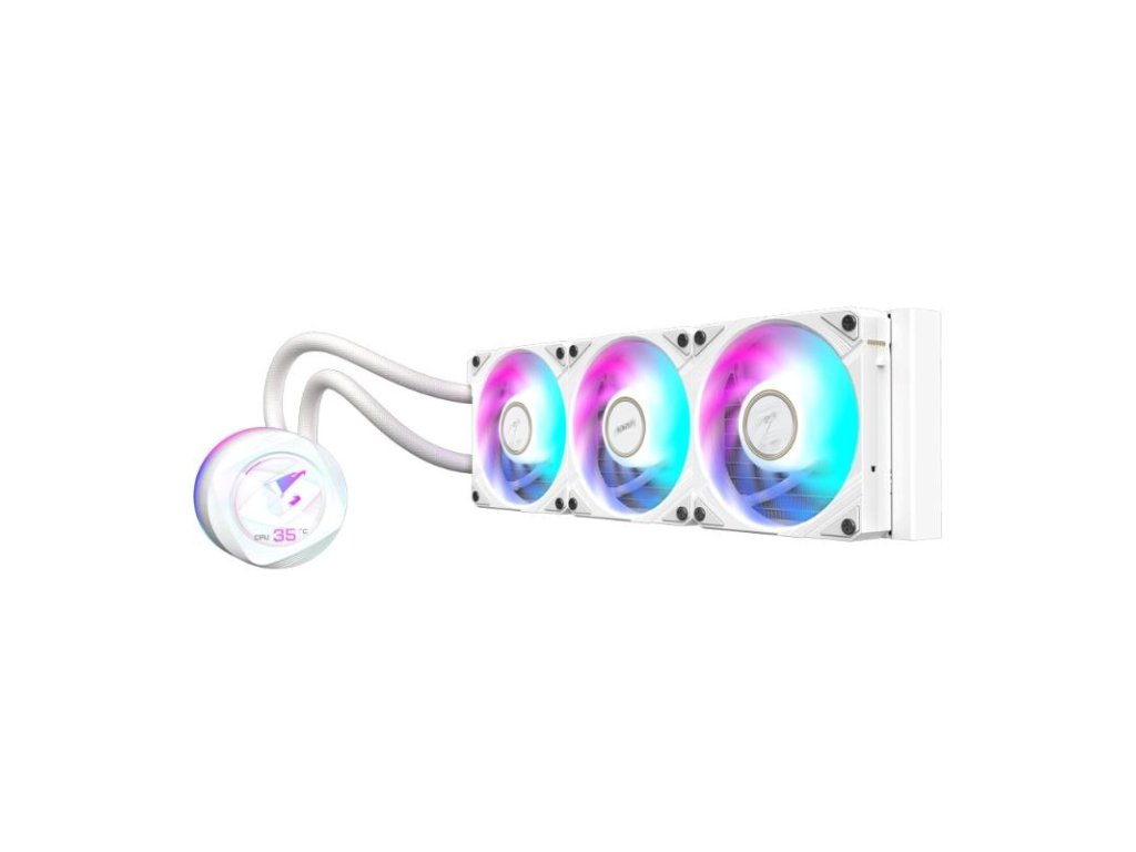 GIGABYTE vodní chladič AORUS WATERFORCE X II 360I, 3x 120mm, ARGB, LCD Displej, LGA1851, AM5, Bílá GP-AORUS WATERFORCE X II 360I Gigabyte