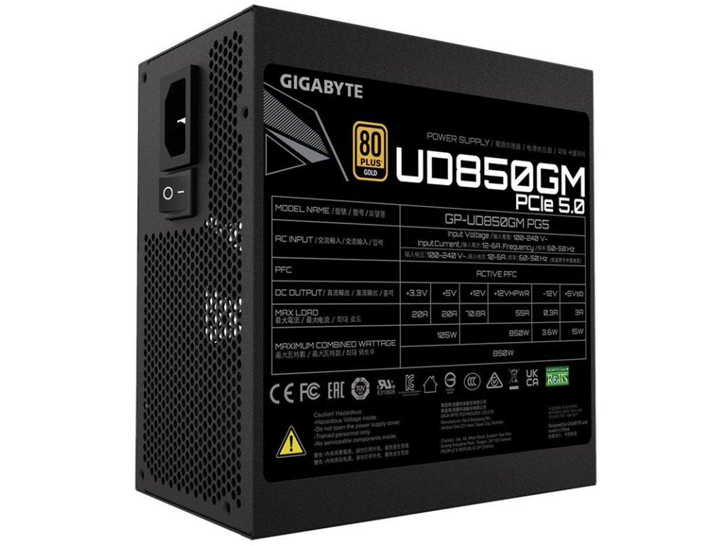 GIGABYTE zdroj UD850GM, 850W, 80plus gold, modular, 120 mm fan GP-UD850GM PG5 Gigabyte