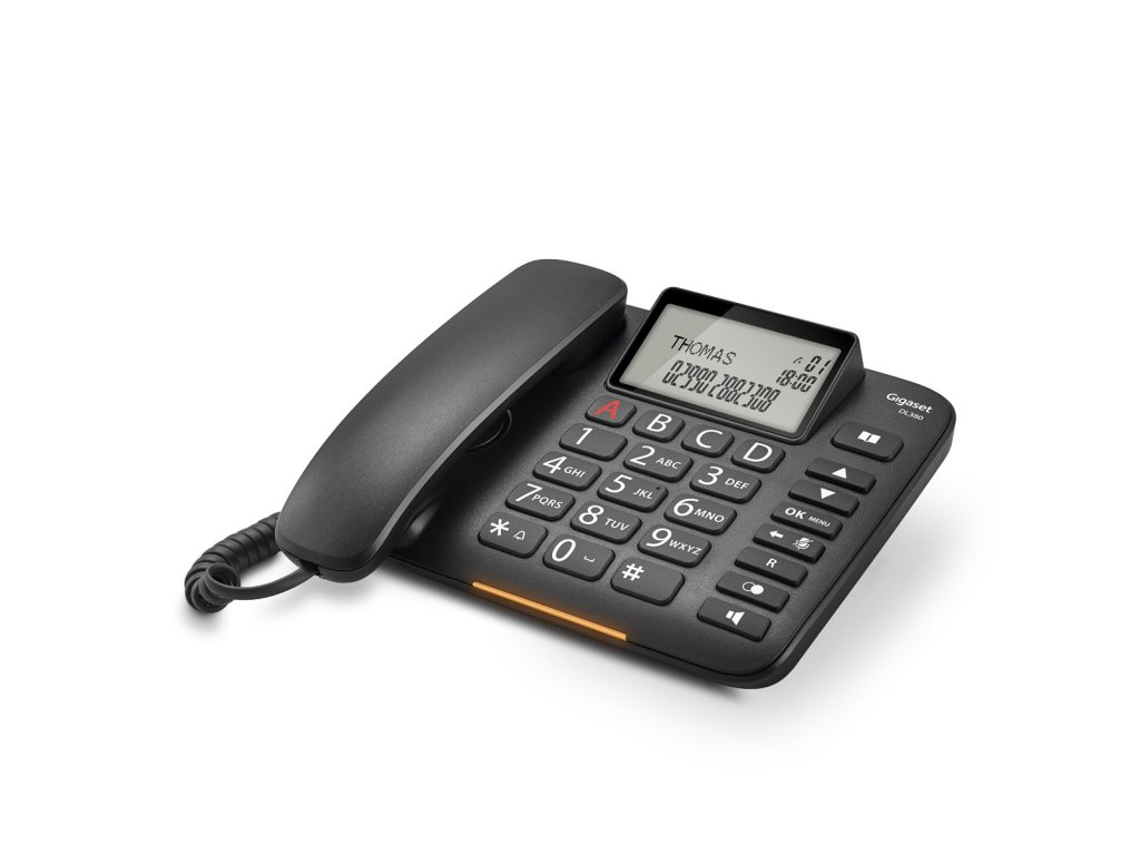 Snadno ovladatelný telefon s velkými tlačítky a rozměrným displejem o Velké ergonomické klávesy o Rozměrný displej o Vynikající kvalita audia o Vizuální zobrazení hovorů přes LED vepředu o 4 programovatelné klávesy přímé volby (A–D) pro důležitá telefonní čísla o Telefonní seznam až na 99 jmen a čísel Kvalita audia o Vynikající kvalita audia o Režim handsfree o Výstup melodie vyzvánění přes handsfree reproduktor o Hlasitost vyzváněcího tónu nastavitelná ve 4 fázích + crescendo o Hlasitost sluchátka nastavitelná v 8 fázích o Hlasitost reproduktoru nastavitelná v 8 fázích o Kompatibilita s naslouchadly Telefonní seznam a funkce vytáčení o Telefonní seznam až na 99 jmen a čísel o 4 programovatelné klávesy přímé volby (A–D) pro důležitá telefonní čísla o Příprava vytáčení (zadání čísla před zahájením samotného procesu vytáčení) s možností opravy o Programovatelné klávesy rychlé volby (1–9) o Opětovné vytáčení posledních 99 čísel (seznam pro opětovné vytáčení se skládá z čísel příchozích a odchozích hovorů) o Proces vytáčení: tónová volba (DTMF) o Klávesa flash (programovatelná doba flash) Displej o Rozměrný displej 78 x 46 mm (Š x V) o Nastavitelný kontrast (3 úrovně) V režimu spánku: - zobrazení data a času - zobrazení zmeškaných hovorů - během hovoru: zobrazení doby trvání hovoru Zobrazení a signalizace hovorů o Zobrazení hovoru se jménem a/nebo telefonním číslem (CLIP/CNIP) o Vizuální zobrazení hovoru: - na displeji - blikající LED vepředu na telefonu o Nastavitelné vyzváněcí melodie - 10 melodií - 4 fáze hlasitosti + crescendo o Časově řízení ztišení vyzvánění (nastavení nemá vliv na kontakty uložené pod klávesami přímé volby A–D) (režim den/noc) o Černý seznam až pro 10 čísel Zobrazení seznamu zmeškaných hovorů / volajících o Displej zobrazující zmeškané hovory o Seznam volajících na - 50 odchozích hovorů - 99 příchozích hovorů (přijaté a zmeškané hovory) o Přímé vytáčení ze seznamu volajících Klávesnice o Vysoce kvalitní ergonomická klávesnice s velkými tlačítky o 4 programovatelné klávesy přímé volby (A–D) pro důležitá telefonní čísla Zapnutí/vypnutí vyzvánění přes klávesu (*) (nastavení nemá vliv na kontakty uložené pod klávesami přímé volby A–D) Menu o Intuitivní moderní uživatelské rozhraní/menu pro snadné ovládání v několika jazycích o Pohodlné hlavní menu s 1 položkou na obrazovce o Snadné ovládání přes textová podmenu Další funkce o Plug & play – velmi snadná instalace: vybalte, zapojte a volejte o Automatické nastavení data a času z telefonní linky o Budík Připojení: o a/b (analog) Telefon o Rozměry: 78 x 200 x 195 mm (V x Š x H) včetně sluchátka o Hmotnost: 590 g