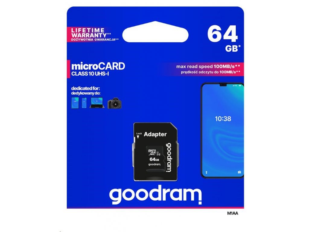 GOODRAM MicroSDXC karta 64GB M1AA, UHS-I Class 10, U1 + adaptér M1AA-0640R12 GoodRAM
