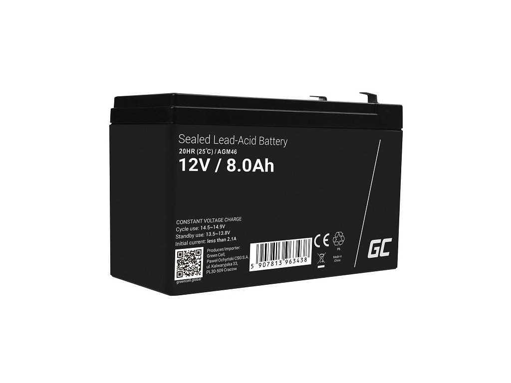 Green Cell AGM VRLA 12V 8Ah maintenance-free battery for the alarm system, cash register, toys AGM46