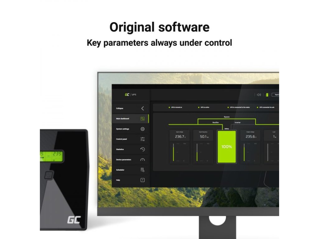 Nouzový napájecí zdroj UPS Green Cell poskytuje plnou ochranu jakéhokoli připojeného zařízení během výpadku napájení a napěťových špiček. S ním si můžete bezpečně uložit práci a bezpečně vypnout zařízení.