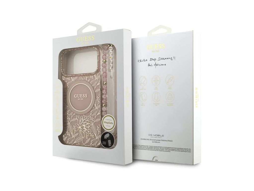 Guess IML Flowers Allover Strap MagSafe kryt iPhone 17 Pro ružový 57983127154