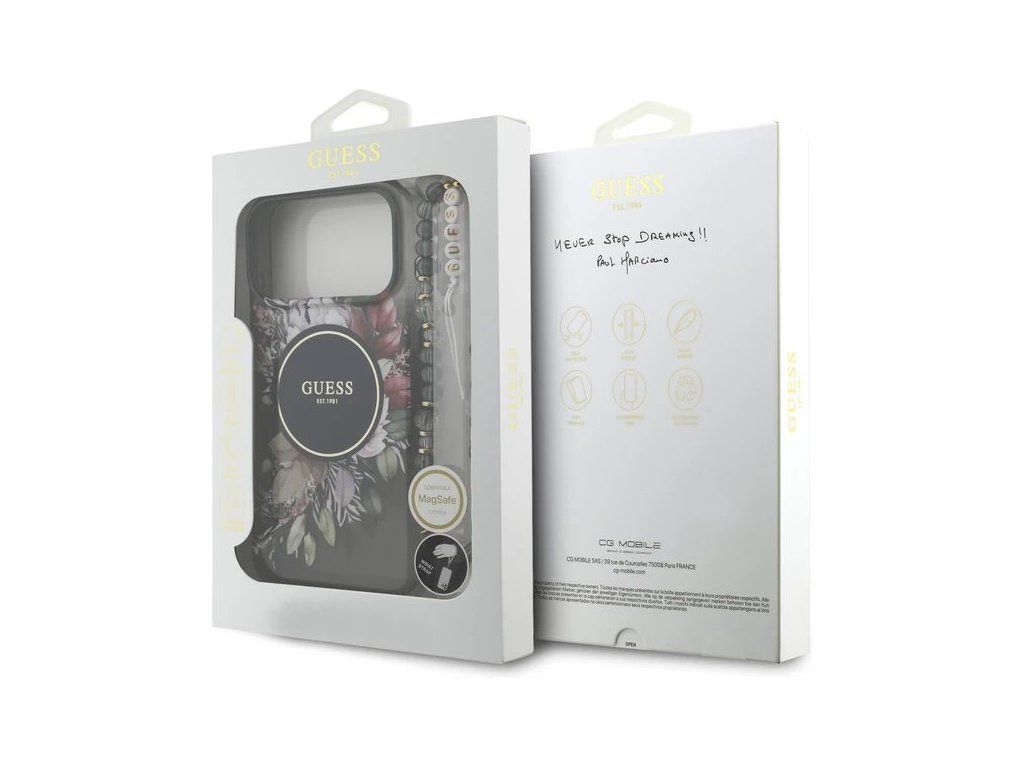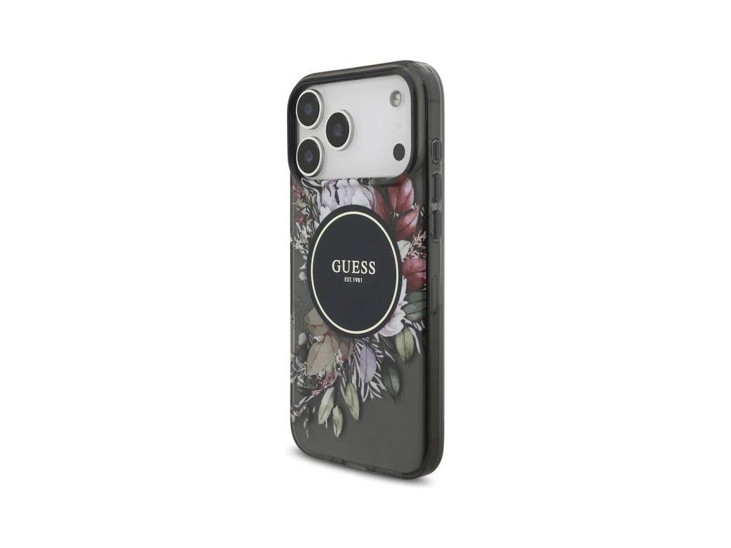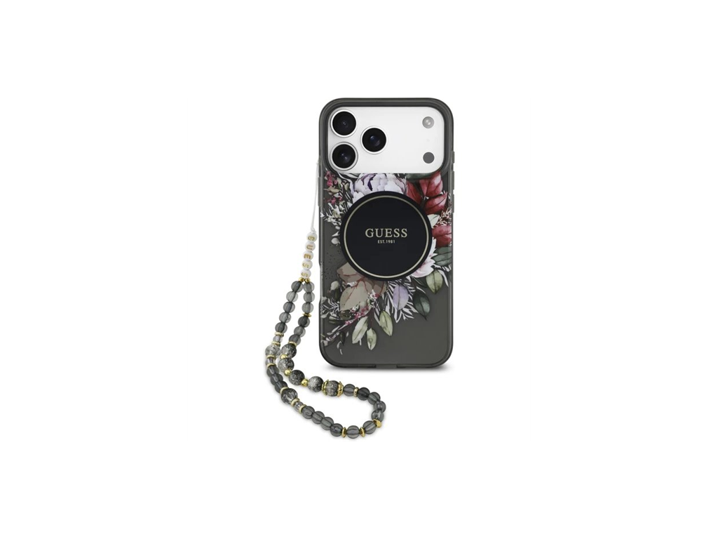 Guess IML Flowers Strap MagSafe kryt iPhone 17 Pro Max čierny 57983126986