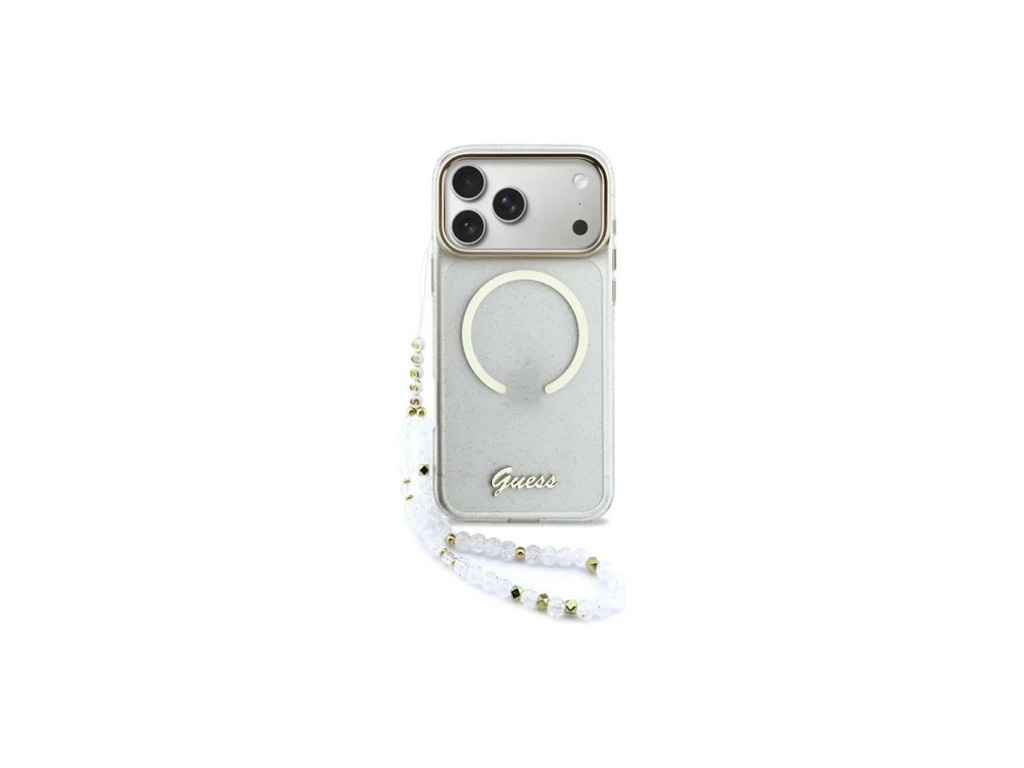 Guess IML Glitter Script Strap MagSafe kryt iPhone 17 Pro Max biely 57983128959