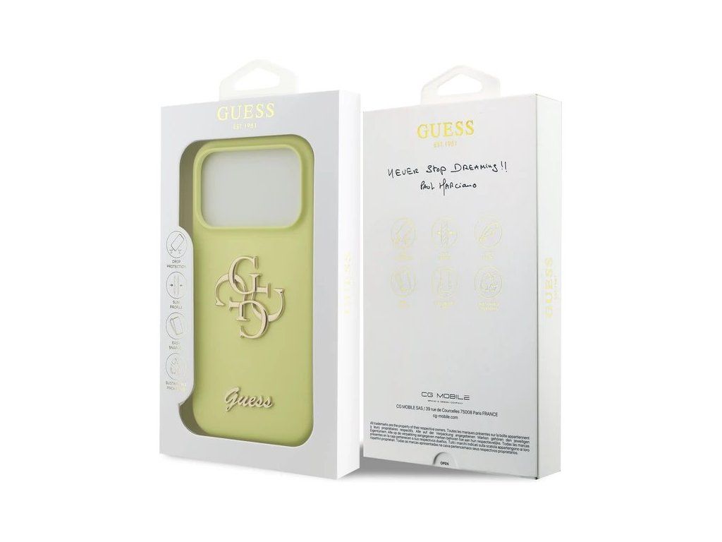 Na zadnej strane krytu zažiari 4G kovové logo a viditeľný nápis Guess, ktoré podčiarkuje jeho exkluzivitu a originalitu.