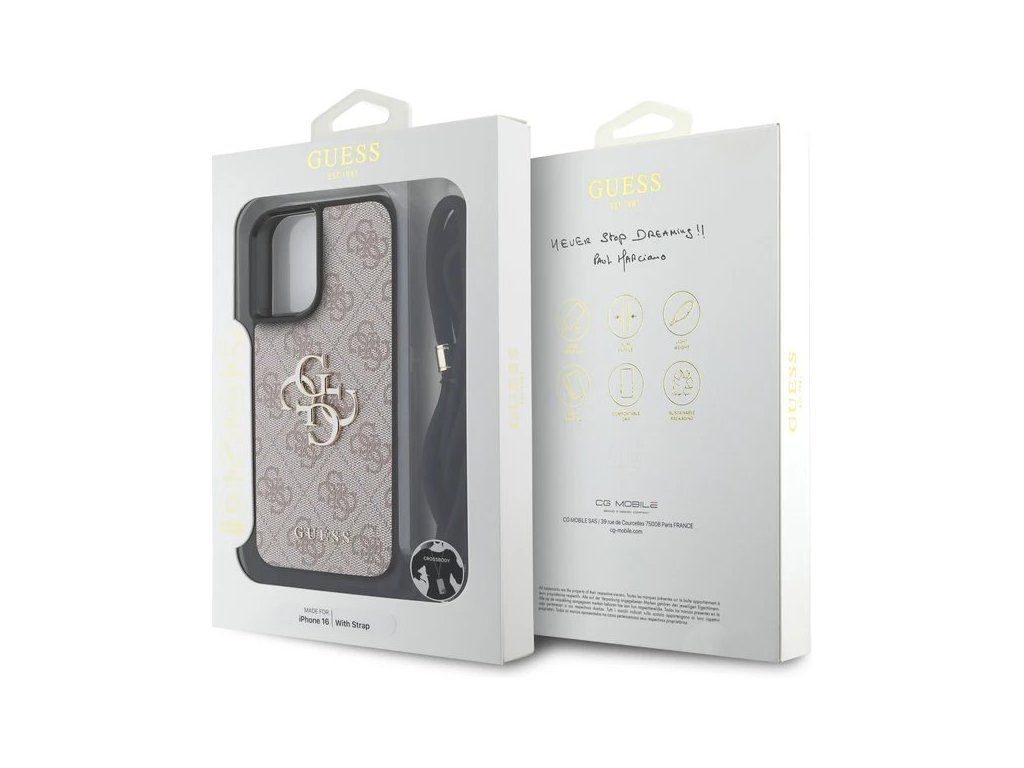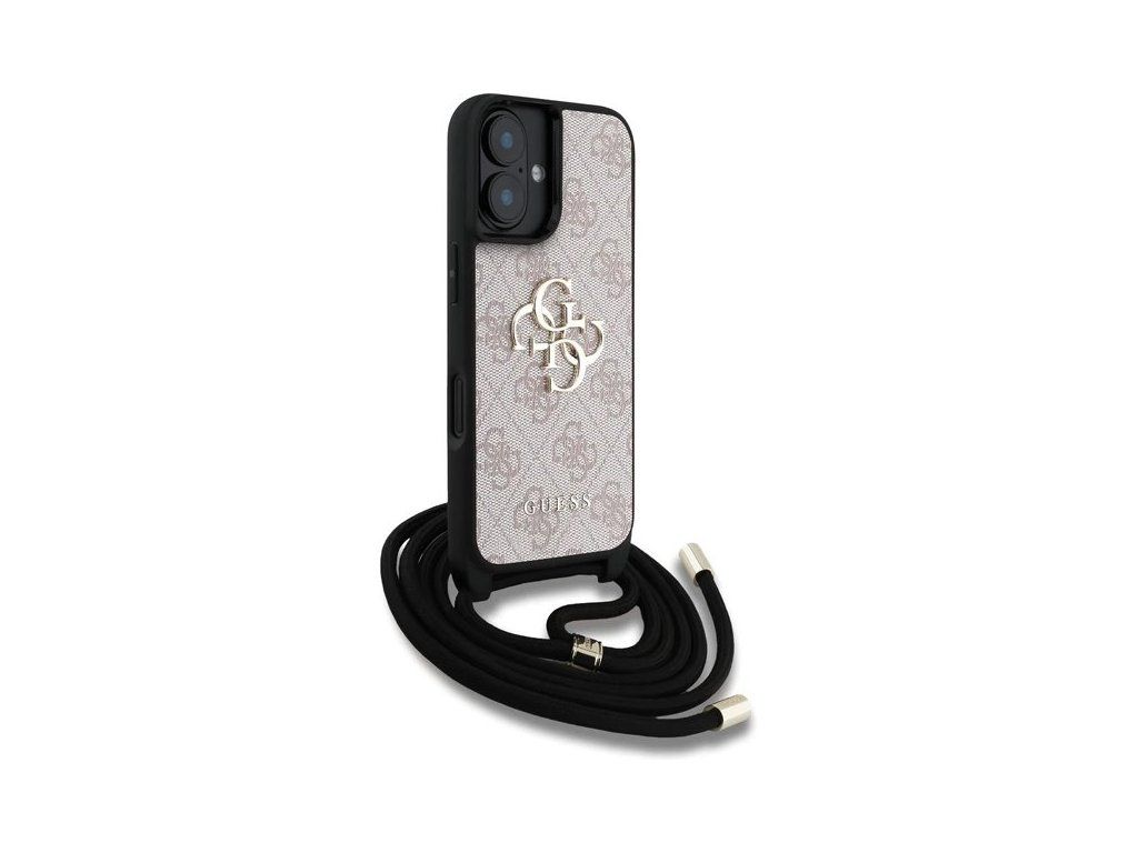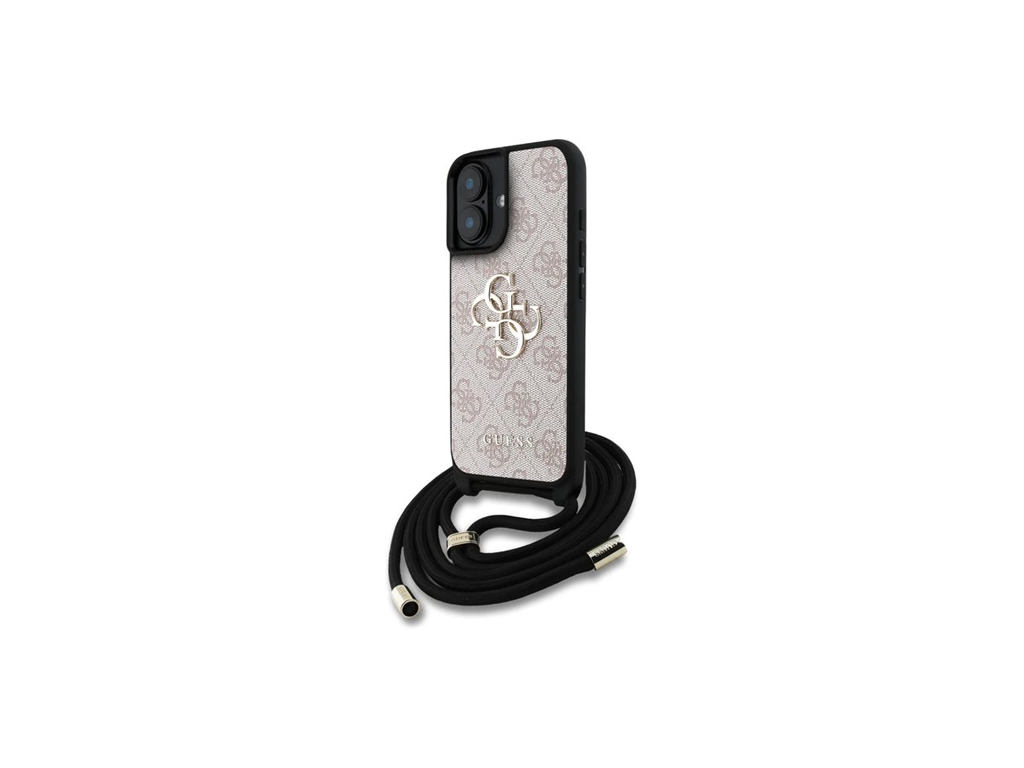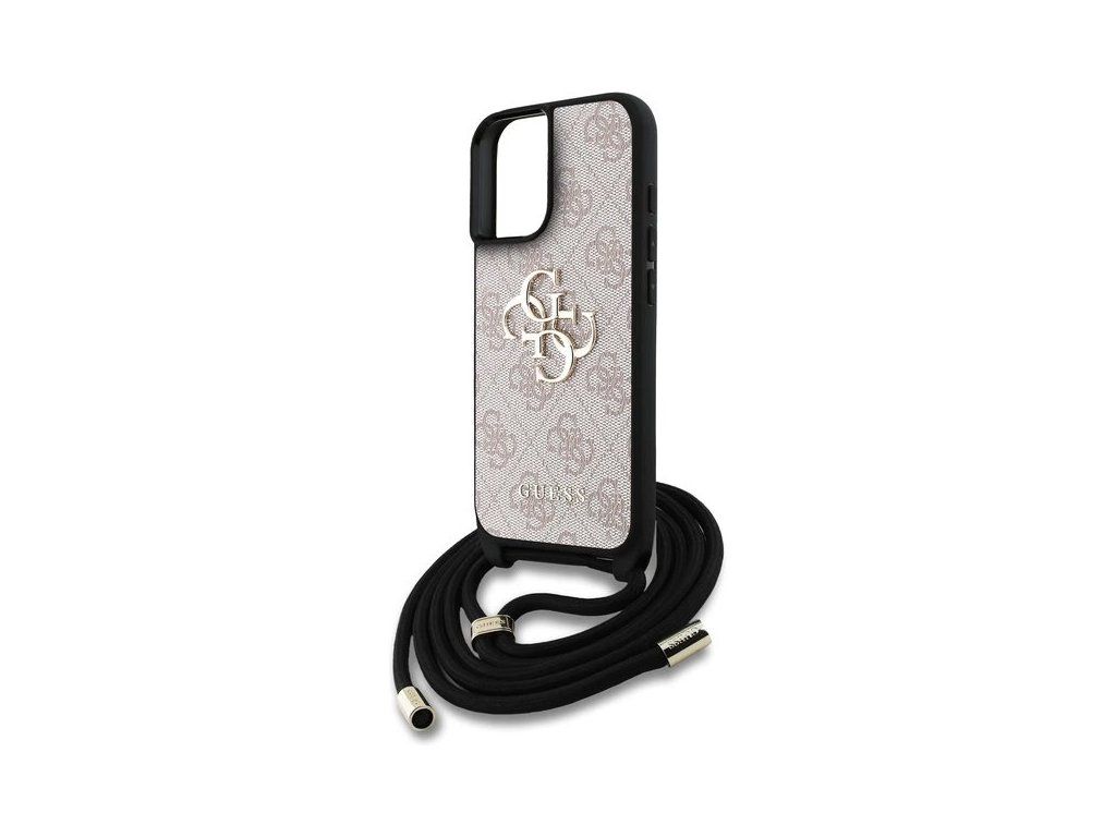 Guess PU 4G Metal Logo Crossbody Popruh kryt iPhone 16 ružový 57983124883
