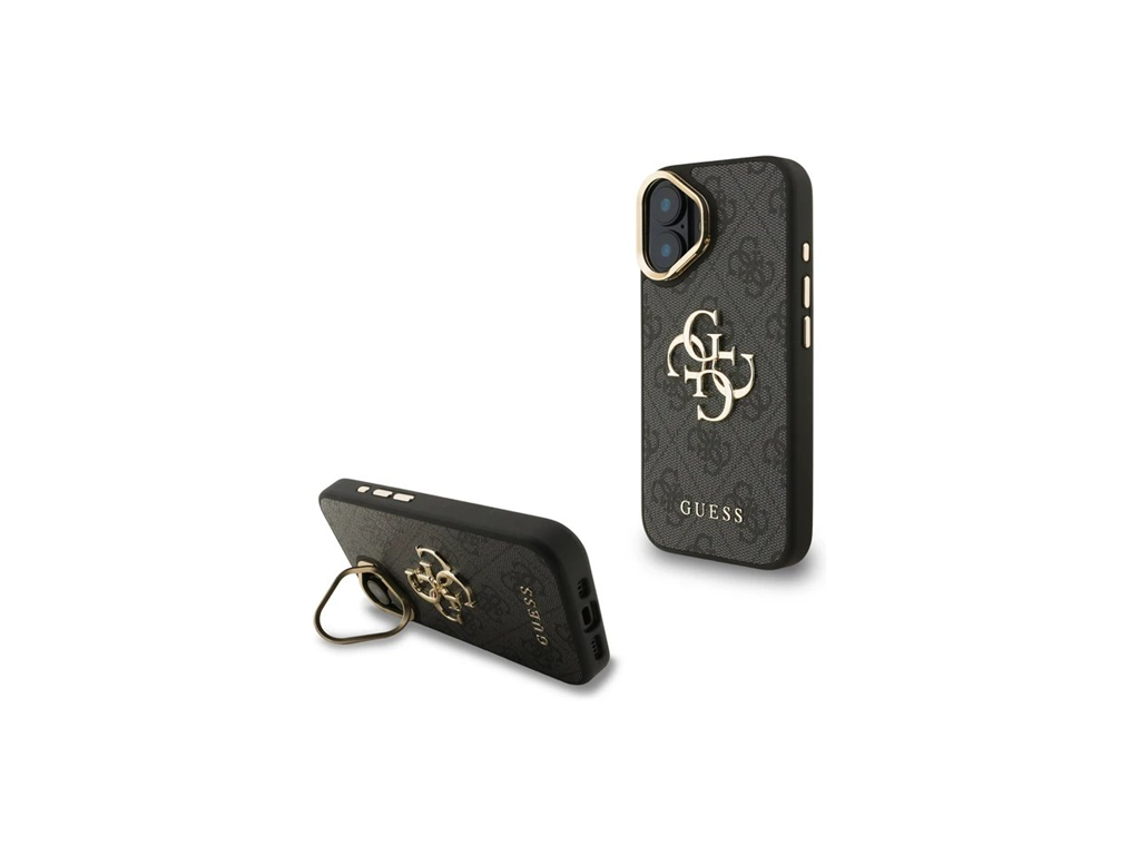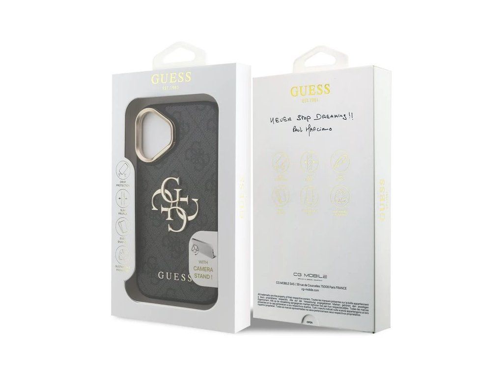 Guess PU 4G Metal Logo Stand Camera Frame kryt iPhone 16 čierny 57983125156