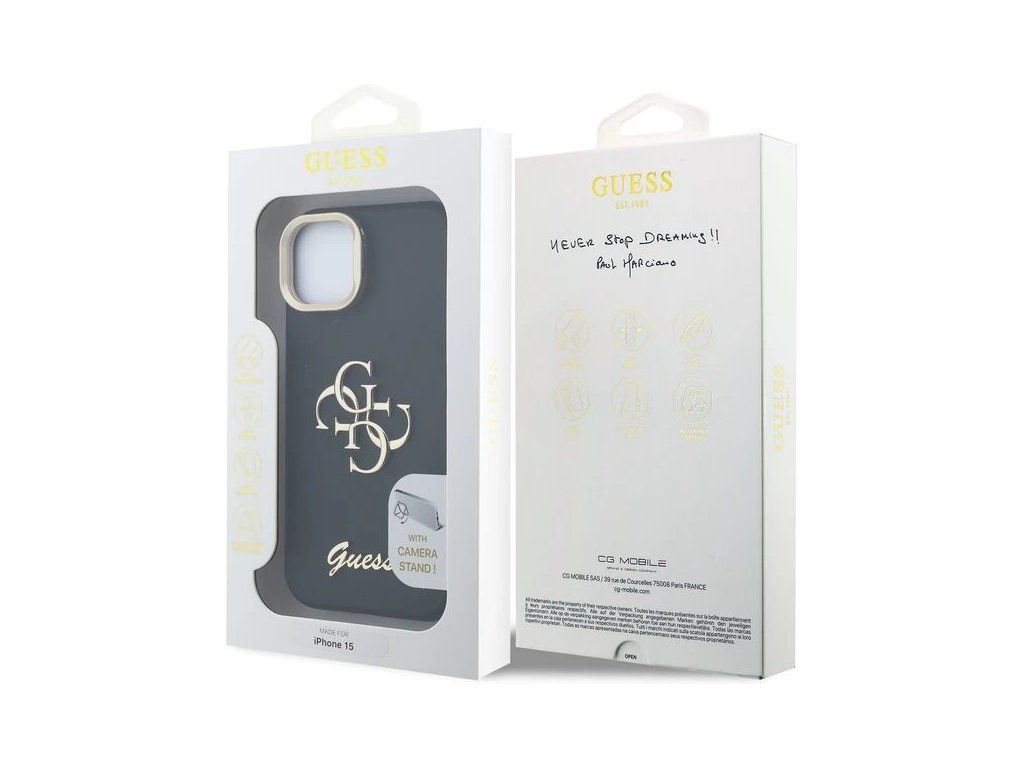 Guess PU Grained 4G Logo Stand Camera Frame kryt iPhone 15 čierny 57983125119