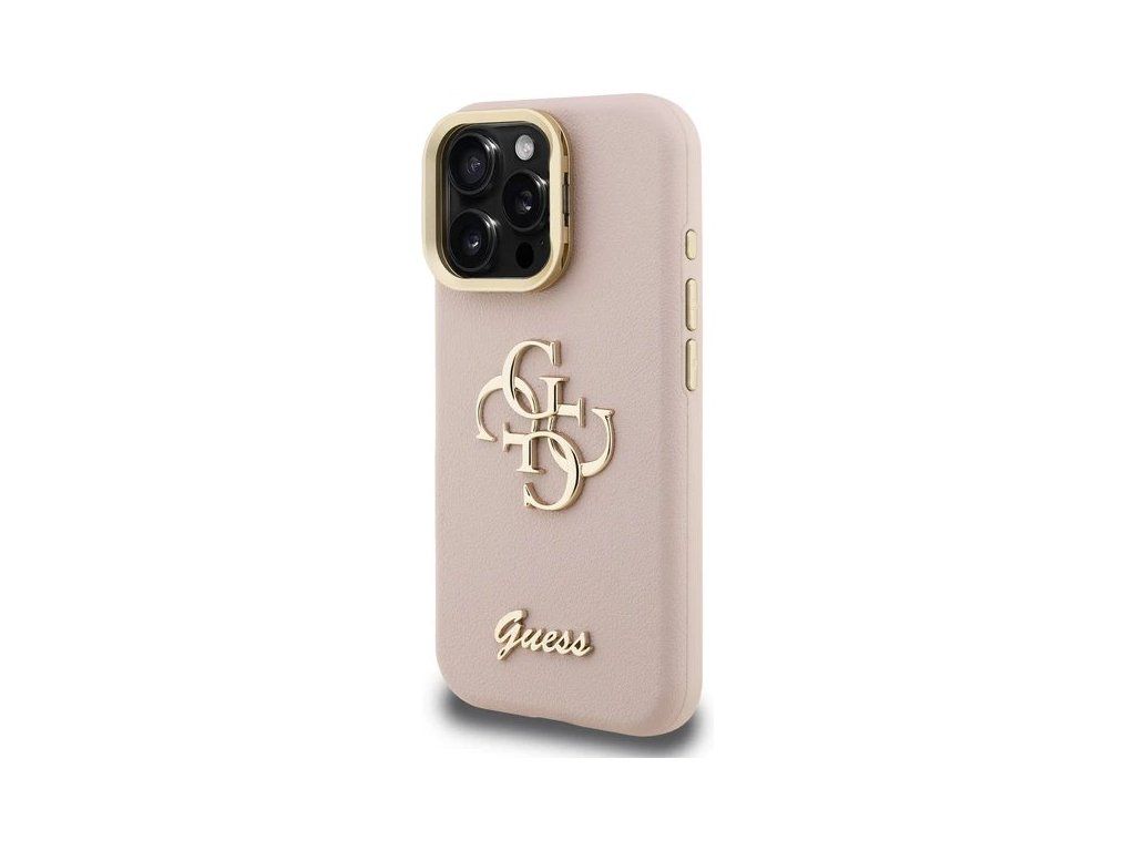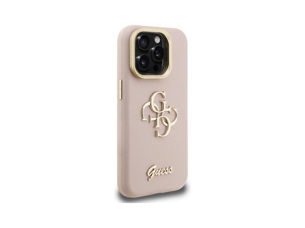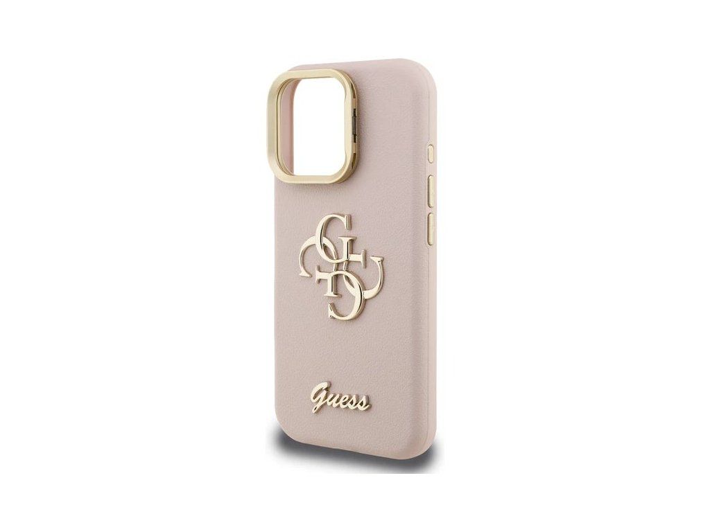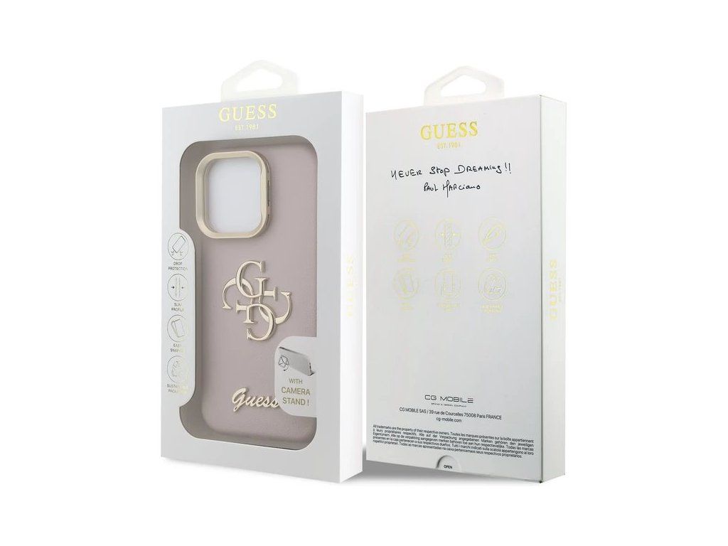 Guess PU Grained 4G Logo Stand Camera Frame kryt iPhone 15 Pro Max ružový 57983125131