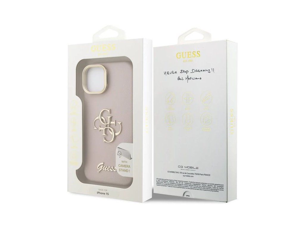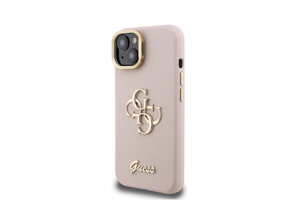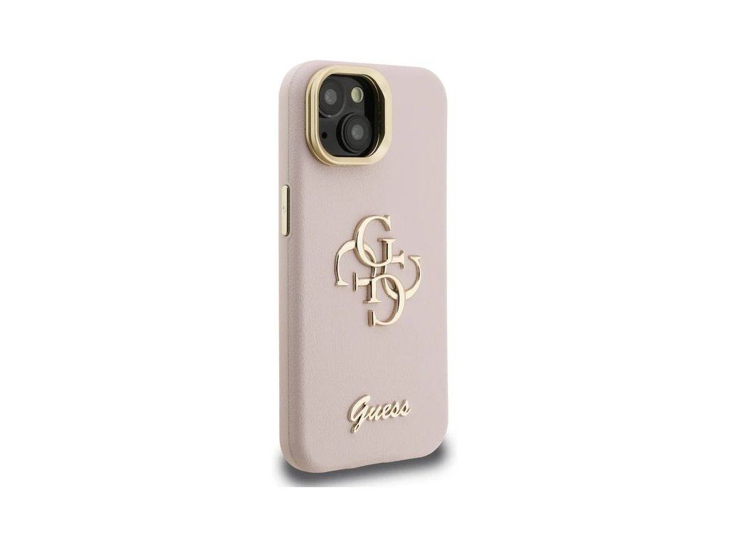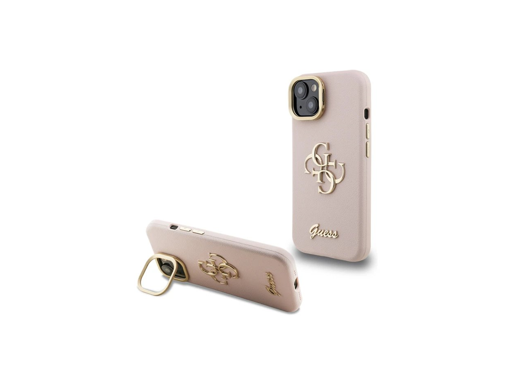 Guess PU Grained 4G Logo Stand Camera Frame kryt iPhone 15 ružový 57983125129