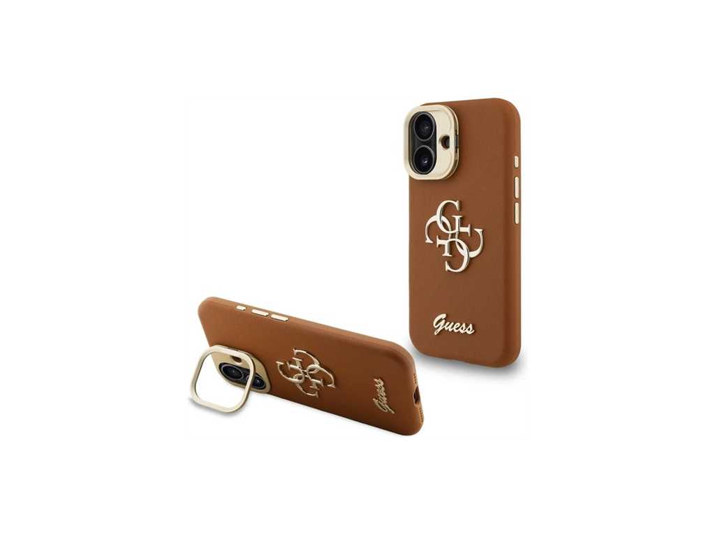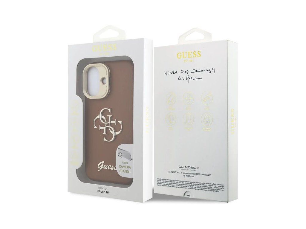 Guess PU Grained 4G Logo Stand Camera Frame kryt iPhone 16 hnedý 57983125140