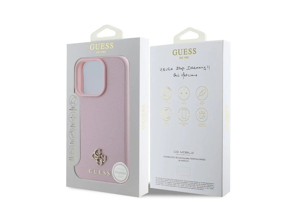 Guess PU Grained 4G Small Metal Logo MagSafe kryt iPhone 16 Pro Max ružový 57983122016