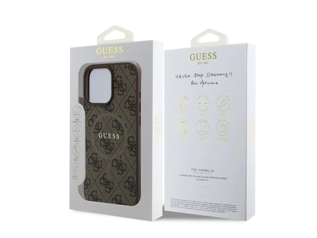 Guess PU Leather 4G Colored Ring MagSafe kryt iPhone 16 Pro hnedý 57983122224