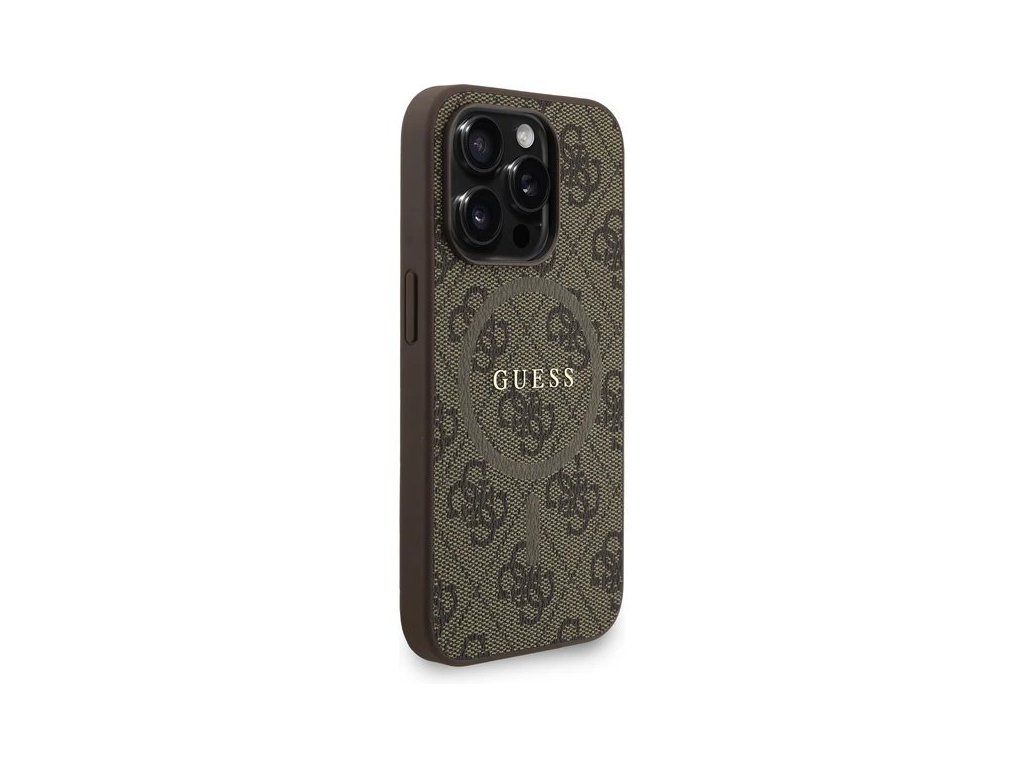 Guess PU Leather 4G Colored Ring Strap MagSafe kryt iPhone 15 Pro hnedý 57983125435