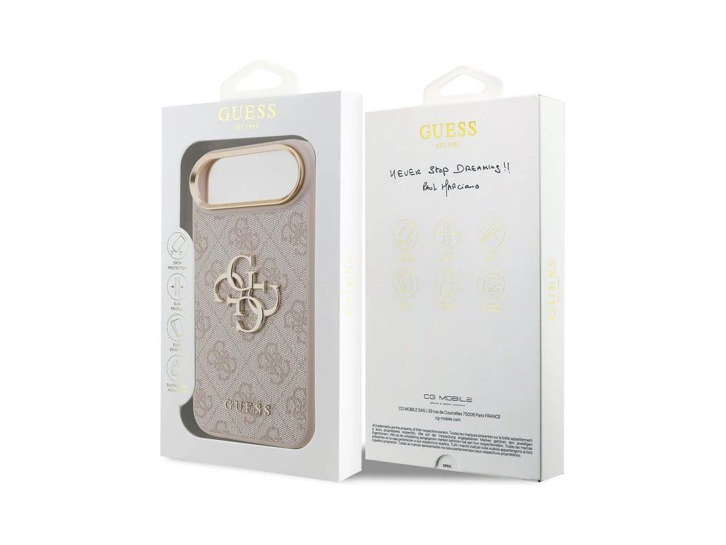 Kryt je tiež doplnený o Guess kovové „4G“ logo ktoré dominuje celému vzhľadu a dodáva tak luxusný vzhľad.