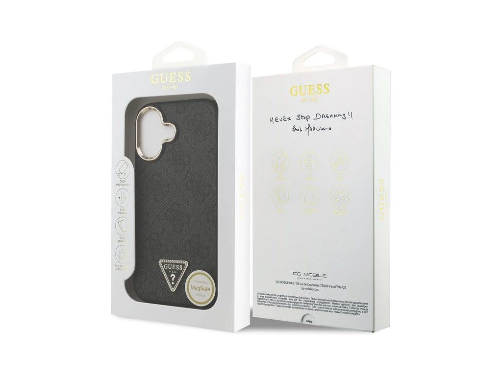 Guess PU Leather 4G Strass Triangle Logo Gold Frame MagSafe kryt iPhone 17 čierny 57983127106