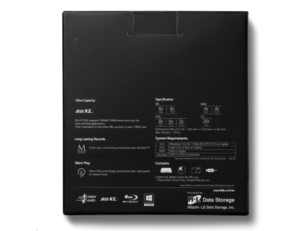 HITACHI LG - Externý disk BD-W/CD-RW/DVD±R/±RW/RAM/M-DISC BP55EB40, čierny, box+SW