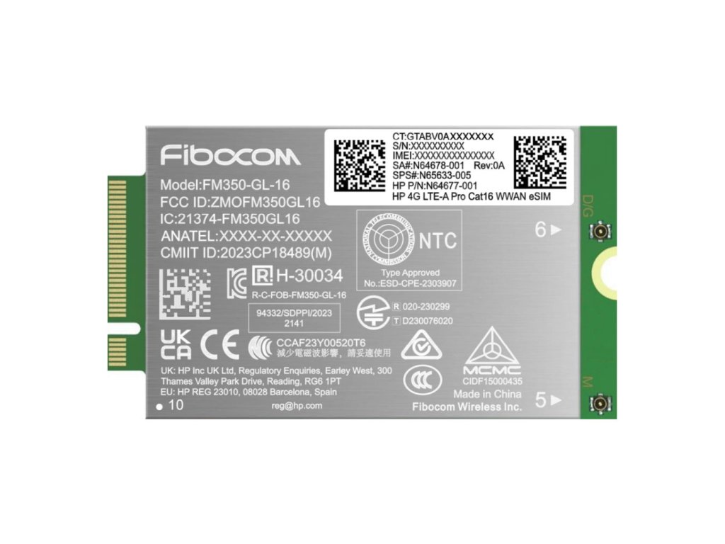 Modul pro mobilní připojení HP 4G LTE-A Pro Cat16 WWAN Kompatibilní s: HP EliteBook řady 800 G11 HP EliteBook řady 1000 G11 HP ZBook Fury G11 HP ZBook Firefly 14/16 G11