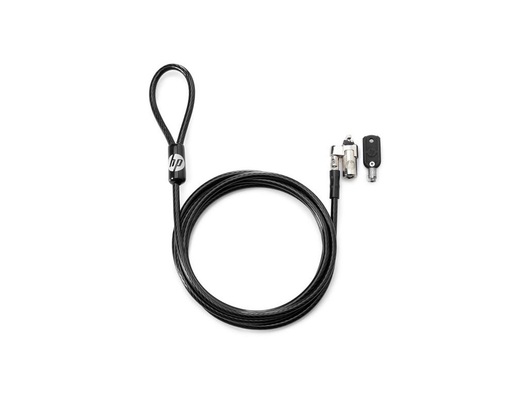 HP Keyed Cable Lock 10 mm. Typ zámku: Round key, Barva: Černá, Materiál: Pozinkovaná ocel. Hmotnost: 120 g