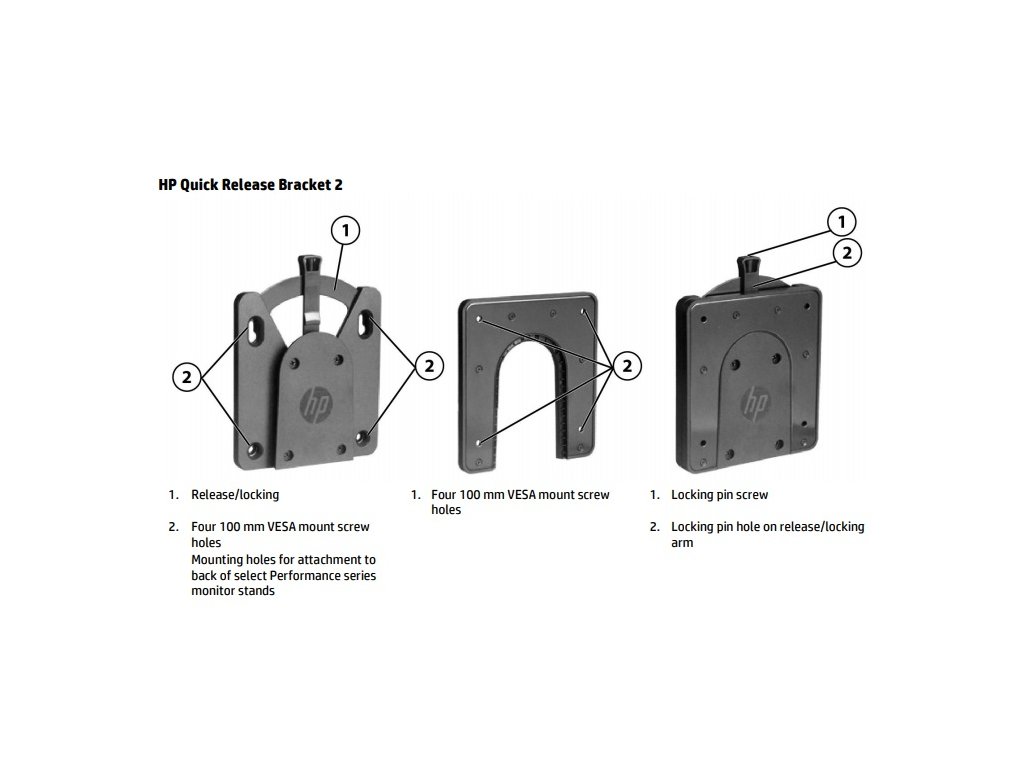Společnost HP nabízí řadu volitelných produktů (prodávaných samostatně), které jsou navrženy tak, aby doplňovaly naše monitory. Konzola HP Quick Release Bracket 2 je určena pro použití s plochými monitory a klienty, které jsou kompatibilní se standardem VESA. HP Quick Release 2 je snadno použitelný, 100 mm kompatibilní s VESA... Mechanismus ''Sure-Lock'' odolný proti poruchám zasekne monitor nebo klient bezpečně na místě, a může být dále zabezpečen proti krádeži bezpečnostními šrouby.