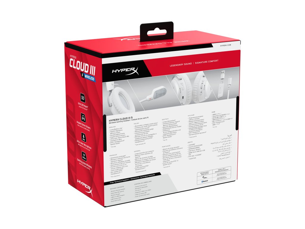 Bezdrôtová náhlavná súprava Cloud III S predstavuje ďalšiu evolúciu bezdrôtovej súpravy Cloud III, pričom si zachováva všetky obľúbené prvky svojho predchodcu. Okrem 2,4 GHz bezdrôtového pripojenia sa môžu používatelia pripojiť k viacerým zariadeniam cez Bluetooth alebo režim okamžitého párovania[2], ktorý je kompatibilný s vybranými notebookmi OMEN. Môže sa tiež pochváliť predĺženou výdržou batérie a viacerými možnosťami prispôsobenia. Vďaka pohodliu charakteristickému pre značku HyperX poskytuje táto náhlavná súprava luxusný komfort na celodenné hranie alebo maratón streamovania. S výdržou batérie až 120 hodín[1] si môžete vychutnať hodiny nepretržitej hernej zábavy prostredníctvom pásma 2,4 GHz. Posuňte hranice ešte ďalej s až 200 hodinami v režime Bluetooth. Je vybavený 53 mm naklonenými budiacimi jednotkami a doživotnou aktiváciou priestorového zvuku DTS® Headphone:X®[3], poskytuje krištáľovo čistý zvuk a zlepšené umiestnenie zvuku, ktoré presne identifikuje kritické zvukové podnety, ako sú kroky. 10 mm mikrofón zabezpečuje jasnú komunikáciu so spoluhráčmi, výbornú kvalitu hovorov a jednoduché rozhovory s priateľmi. Pomocou ľahko použiteľných ovládacích prvkov zvuku je možné rýchlo stlmiť alebo zrušiť stlmenie mikrofónu, upraviť úroveň hlasitosti a ľahko prepínať medzi bezdrôtovými režimami. Či už hráte hry, počúvate hudbu, sledujete YouTube, prehliadate Twitch, alebo plníte úlohy, bezdrôtová náhlavná súprava Cloud III S zaručuje, že vám už nikdy nič neunikne!