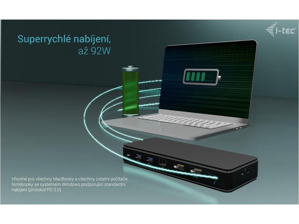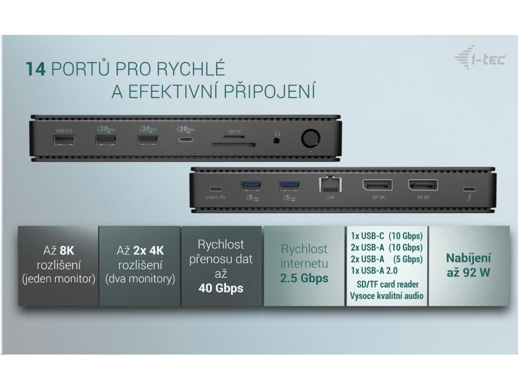 i-tec Thunderbolt 4 Dual Display Docking Station, Power Delivery 92W TB4DUALDPDOCKPDPRO I-Tec