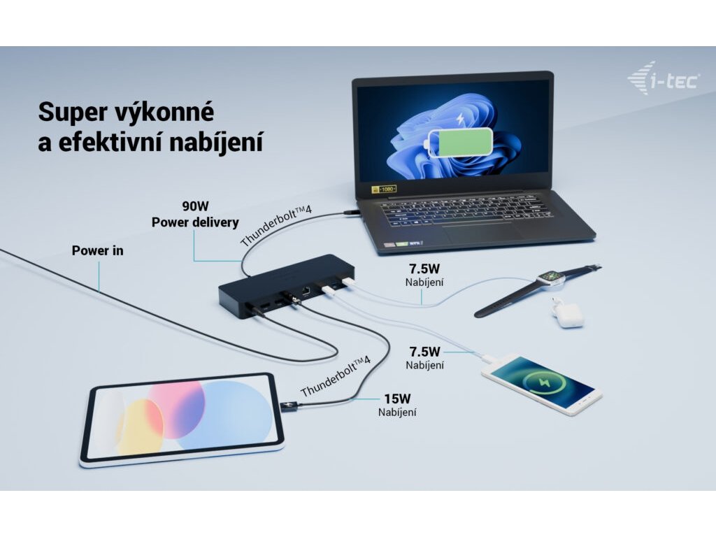 i-tec Thunderbolt 4 Intelligent Dual Display Docking Station, Power Delivery 90W TB4INTGDUAL4KDOCPD I-Tec