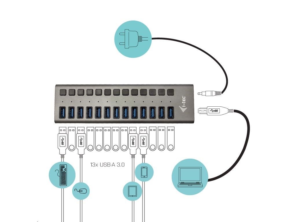 iTec USB 3.0 Nabíjací HUB 13port + napájací adaptér 60 W U3CHARGEHUB13 I-Tec