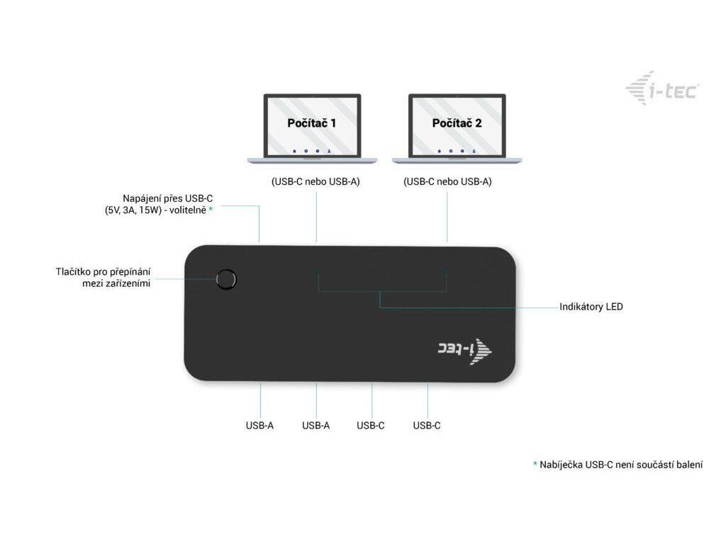 i-tec Universal KVM HUB 2x USB-C + 2x USB-A 3.0 Port CAKVMHUB2A2C I-Tec